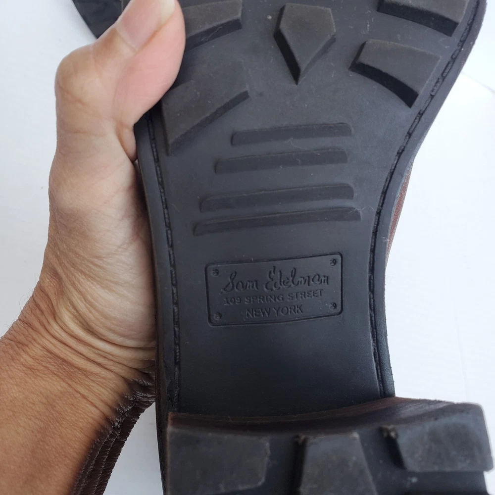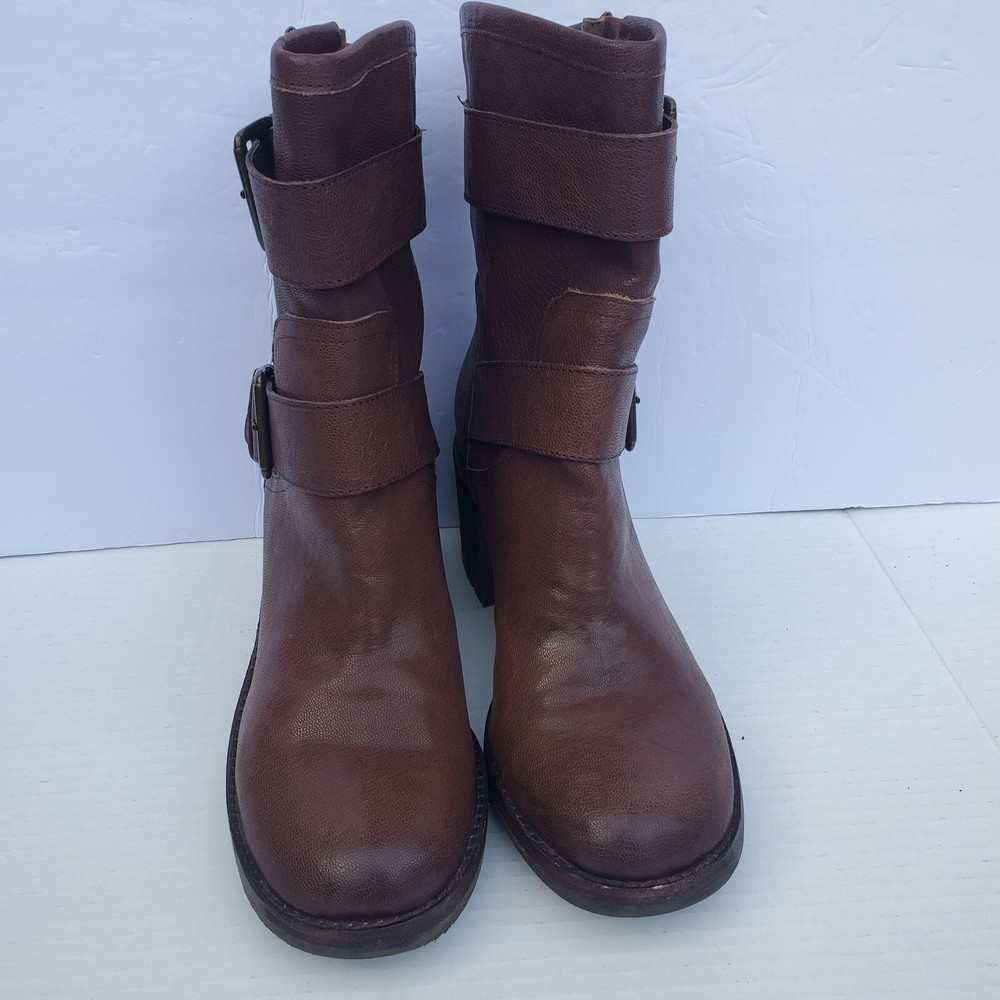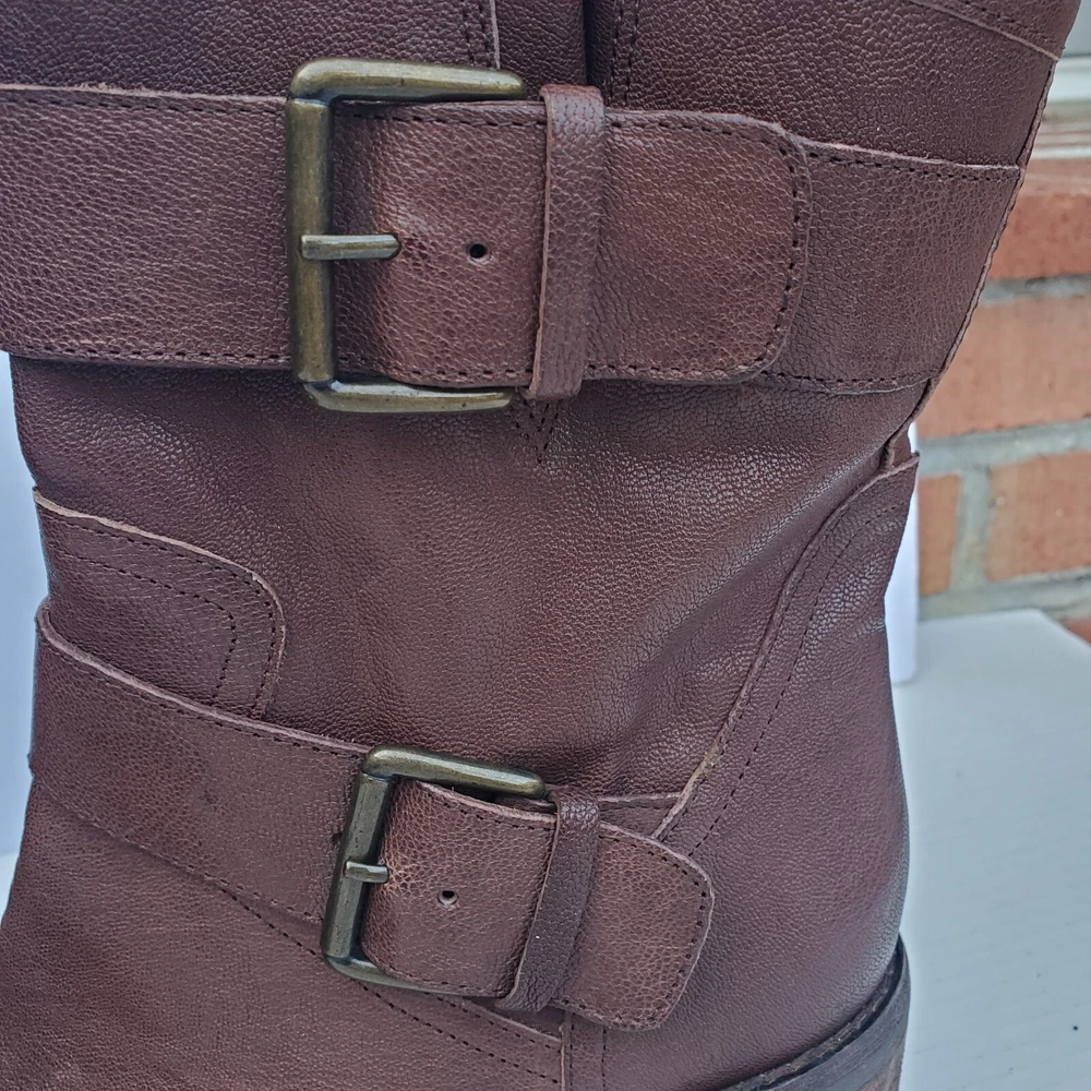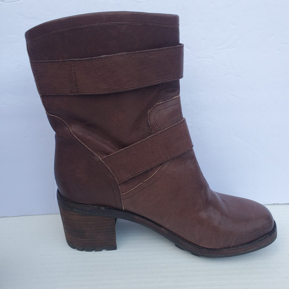Sam Edelman Woman's Troy Brown Biker Moto Leather Block Heel Boots. Size 8.5M. Excellent Pre-owned condition. Boots show very little wear. Please see photos.