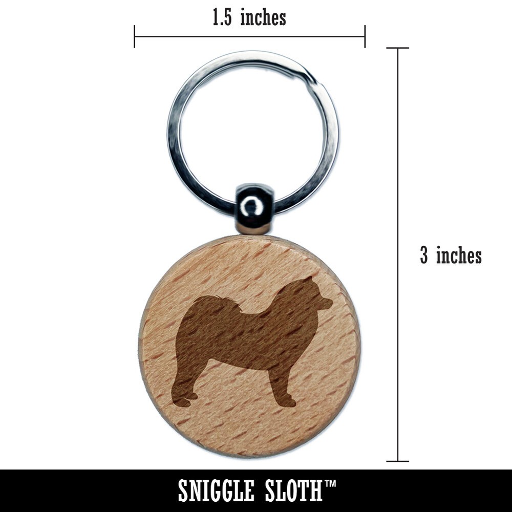 Samoyed Dog Custom Engraved Wooden Round Keychain Pet ID Tag