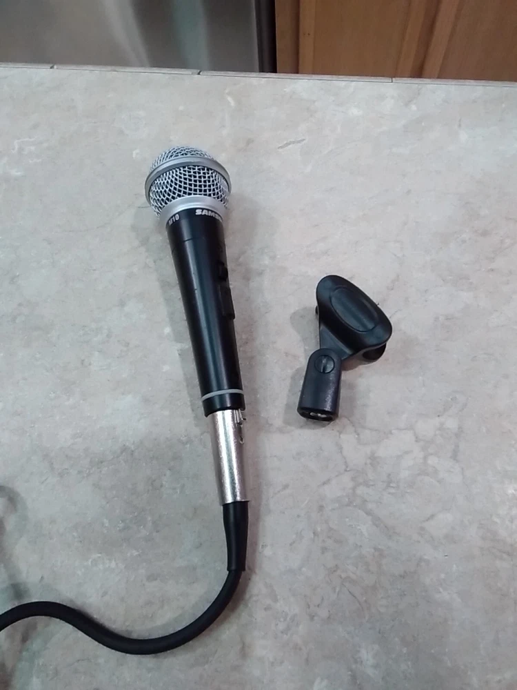 Working has clip mount goes on stand. See pictures for items and condition. This Samson M10 Dynamic Microphone is a great addition to any musician or vocalist's gear collection. The microphone is designed with a wired connectivity option and comes with a cable and clip stand mount for easy installation. The unit type is a dynamic microphone, and the brand is Samson. The microphone's form factor is dynamic, making it perfect for live performances and recording sessions. Its model number is M10, and it falls under the category of Musical Instruments & Gear, Pro Audio Equipment, and Microphones & Wireless Systems. This unit is perfect for anyone in search of a reliable and high-quality dynamic microphone. Erack3bx