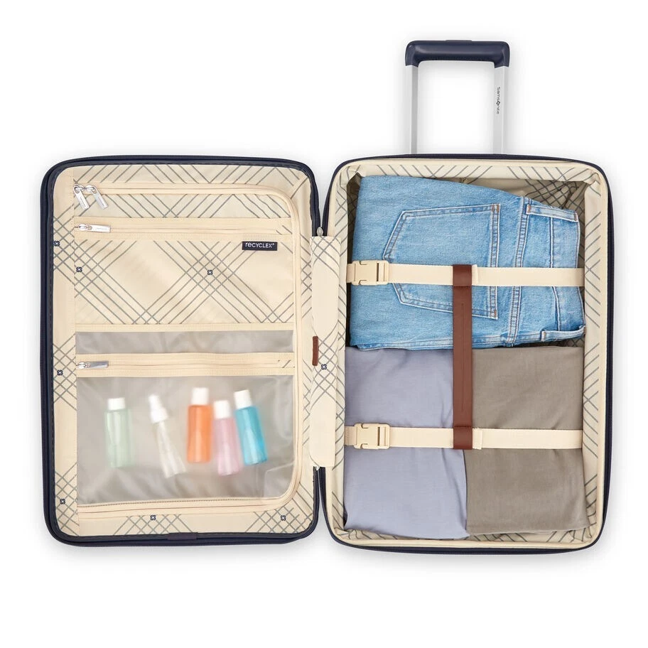 Elevate your carry-on aesthetic with the Virtuosa Expandable Carry On. Featuring expansion, a TSA integrated lock, RightHeight™ handle, dual spinner wheels, and sleek leather-like accents, this case is the ultimate stylish addition. Overall Dimensions: 23 in. x 15 in. x 10 in. Weight: 6.39 lbs