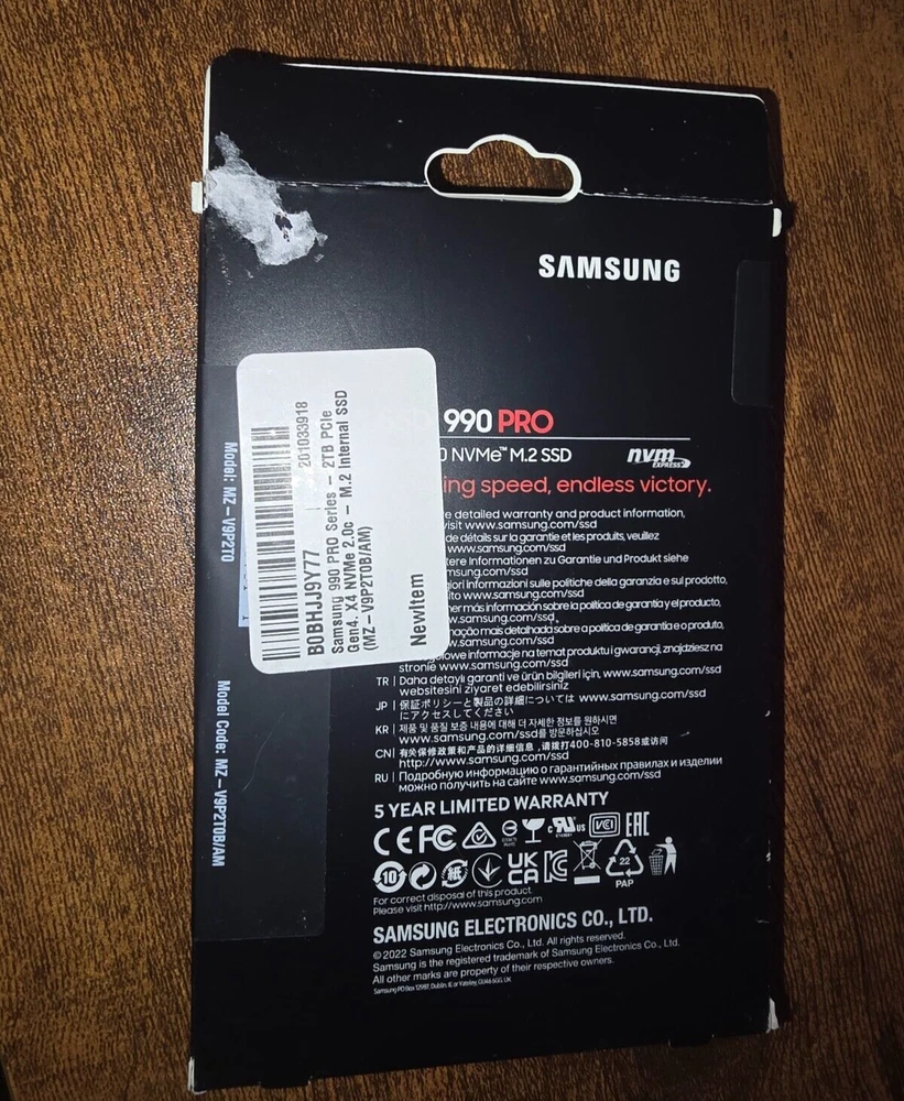 Samsung 990 PRO 2TB NVMe PCIe 4.0 M.2 2280 (MZ-V9P2T0B/AM) Internal SSD Brand new box never opened. Purchased for a project I didn't go forward with.
