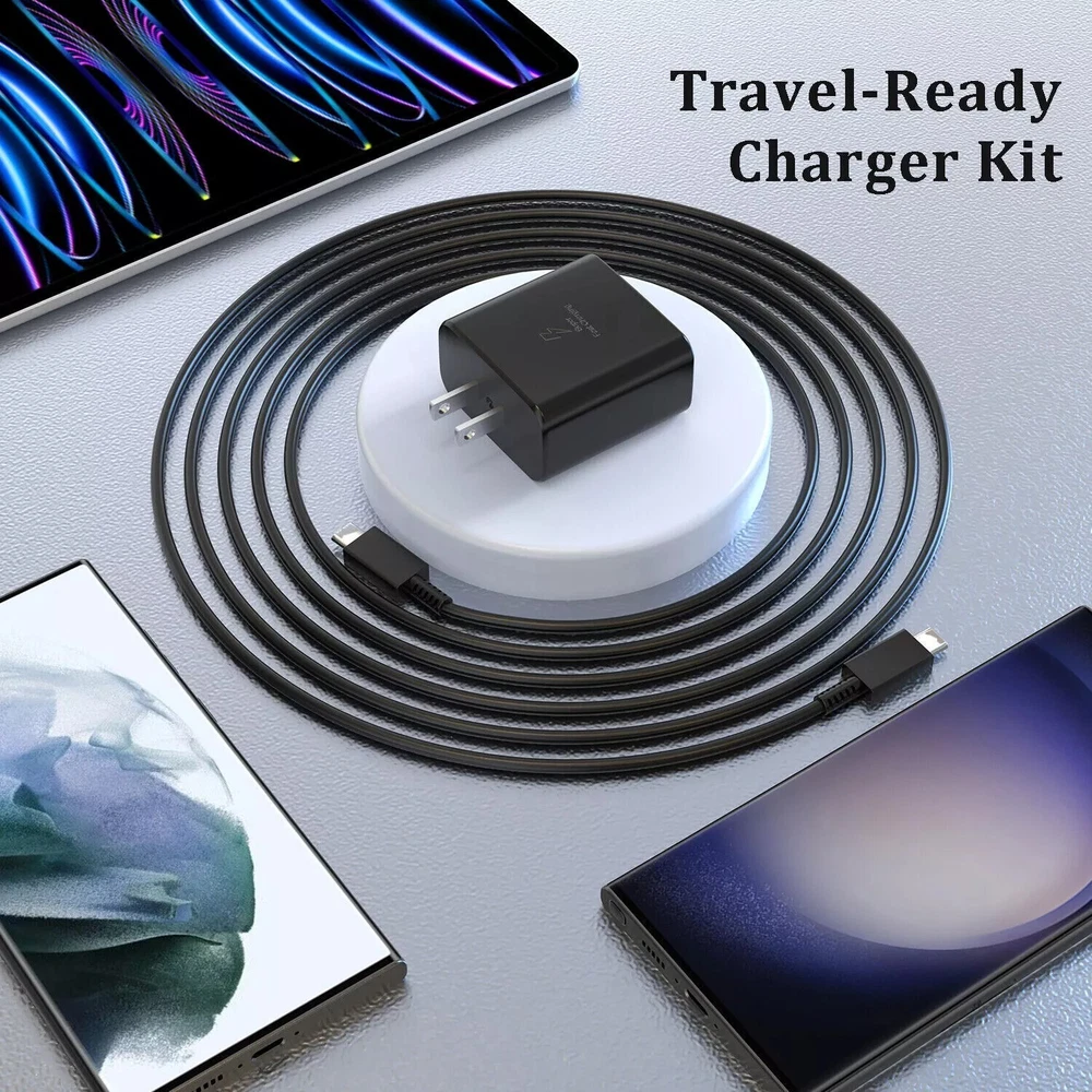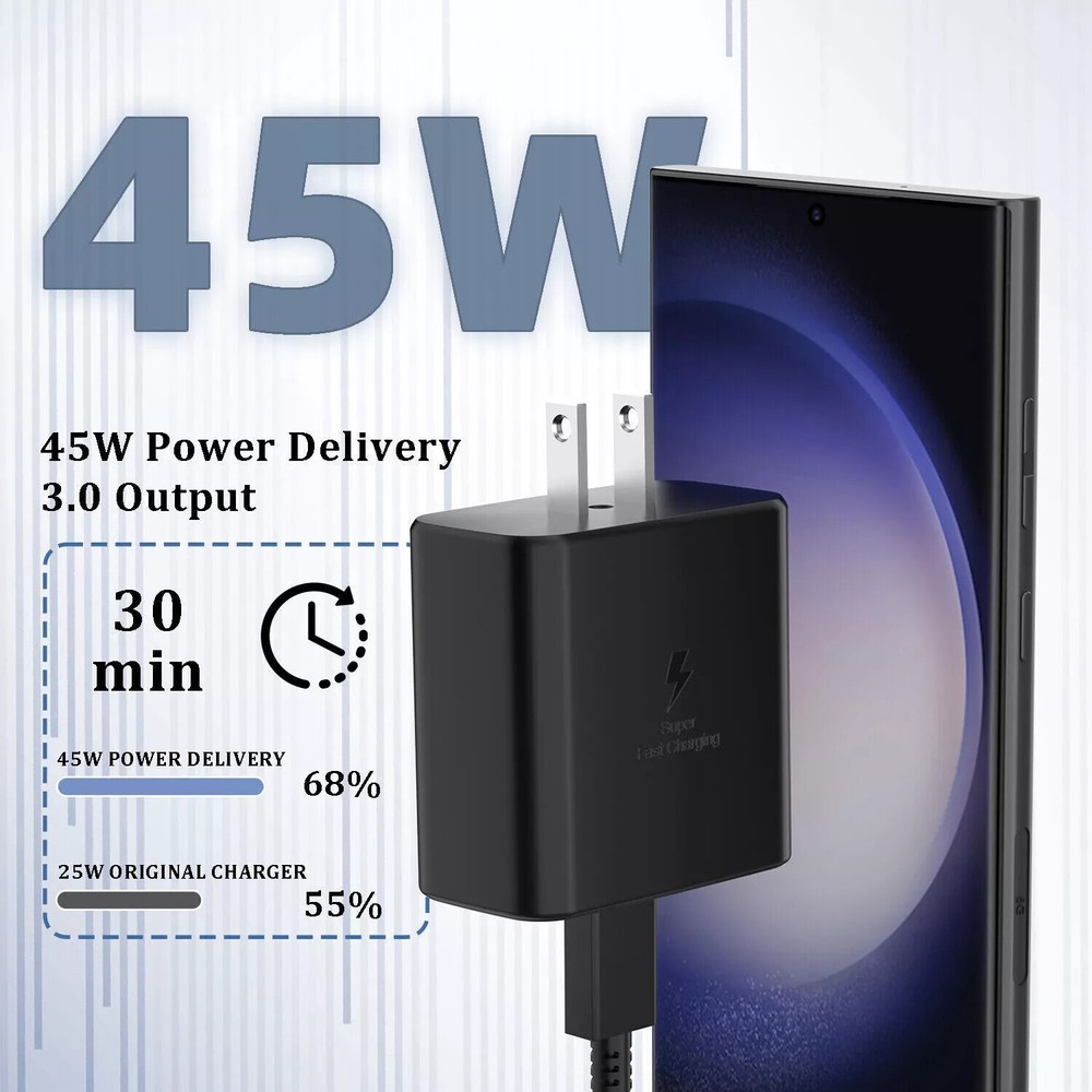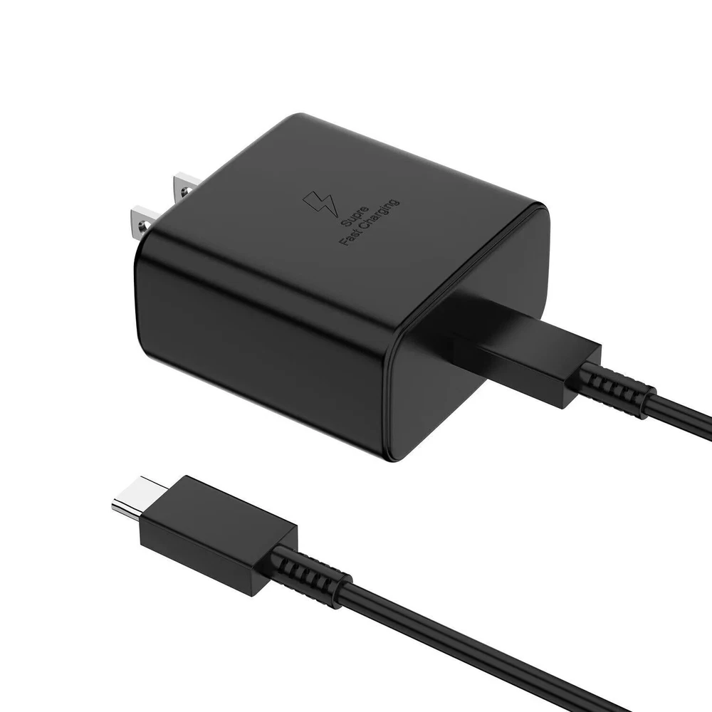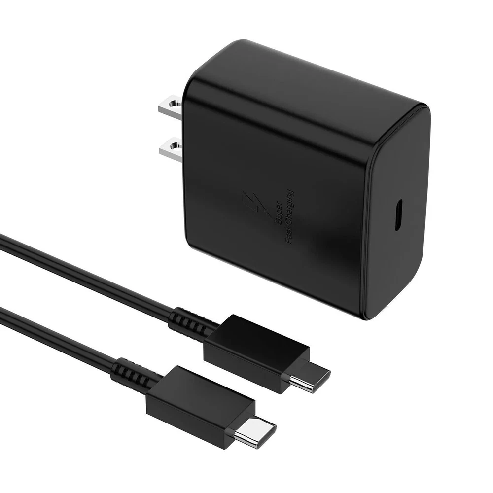 Features 【45W Fast Charging】 PD3.0 power supply technology ensures that all Samsung Galaxy devices can get the best and fast safe charging experience (45W) 【Type C PD Charger】 USB C Charger can charge most USB Type-C and PD devices and non-PD devices at full speed. 【USB-C to USB-C Charging Cable】 6 feet , convenient for charging in different occasions, suitable for travel, home, car, office, etc.6FT Type C to C Cable - USB-C connector offers a user-friendly reversible design, fast Charging and transferring, Up to 480 Mbps data transfer speed. Power output up to 3 Amp 【Fast Charging】 Built-in smart chip, PD wall charger automatically matches the current required by the device. 【Safe and Reliable】 Overcurrent, overvoltage and short circuit protection can effectively protect your equipment from damage. 【Small Size】 Small size and lightweight weight ensure maximum portability. Slim enough to carry with you. 【Wide Compatibility】 USB-C PD3.0 charger is consistent for Samsung, etc. Specifications Color:Black Material: ABS Type: 45W Super Fast Charger Type C (USB C) Input: 100-240V, 50-60Hz, 1.2A Output: (PDO): 5.0V-3.0A or 9V-3.0A or 15.0V-3.0A or 20.0V-2.25A (PPS) 3.3-11.0V--4.05A or 3.3-16.0V--2.8A or 3.3-21.0V--2.1A Consistent with For Samsung Galaxy A20/A21/A22/A50/A51/A52/A70/A71/A72/A90/A91/A92 For Samsung Galaxy S8/S8+ For Samsung Galaxy S9/S9+ For Samsung Galaxy S10/S10+/S10e For Samsung Galaxy S20 For Samsung Galaxy S20 5G For Samsung Galaxy S20+ For Samsung Galaxy S20+ 5G For Samsung Galaxy S20 Ultra 5G For Samsung Galaxy S20 FE For Samsung Galaxy S21 5G For Samsung Galaxy S21+ 5G For Samsung Galaxy S21 Ultra 5G For Samsung Galaxy S22 For Samsung Galaxy S22 Plus For Samsung Galaxy Note10, For Samsung Galaxy Note10+, For Samsung Galaxy Note10+ 5G, For Samsung Galaxy Note10 5G, For Samsung Galaxy Note8, For Samsung Galaxy Note9 All Type C Device Package Include: 1 x 45W Super Fast Wall Charger + 6FT Cable