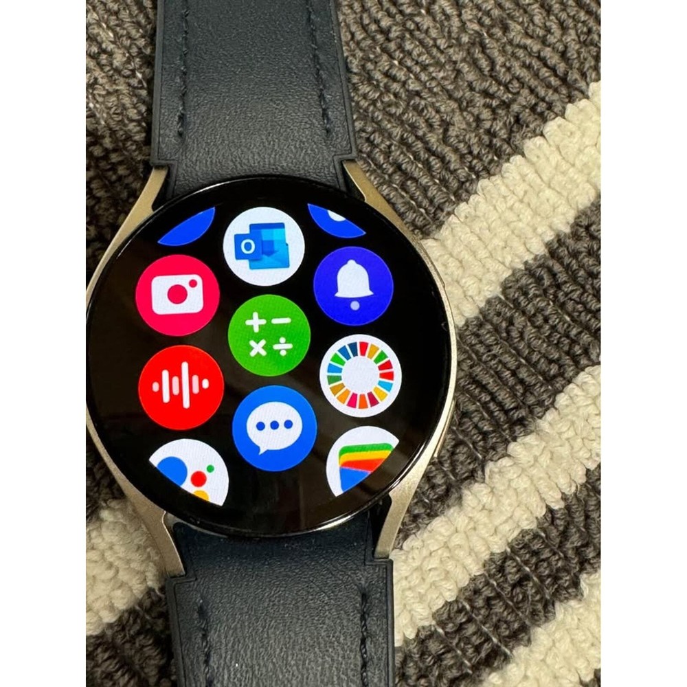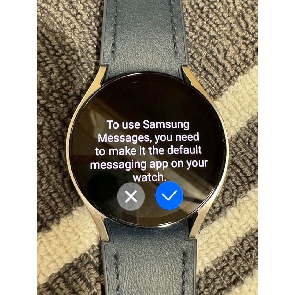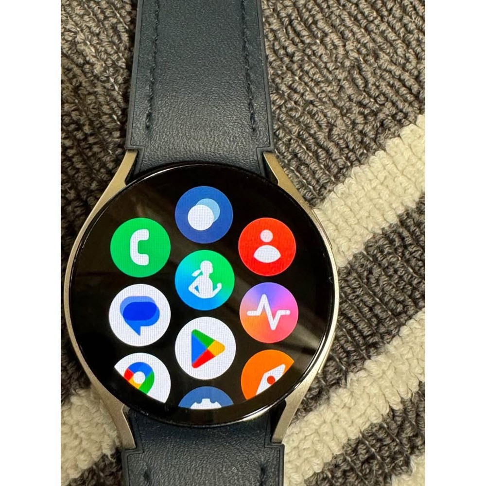 Samsung galaxy watch 6. Navy blue hybrid eco leather band. Only wore this maybe 10x…just feels too big on my wrist. Includes charger and original box.