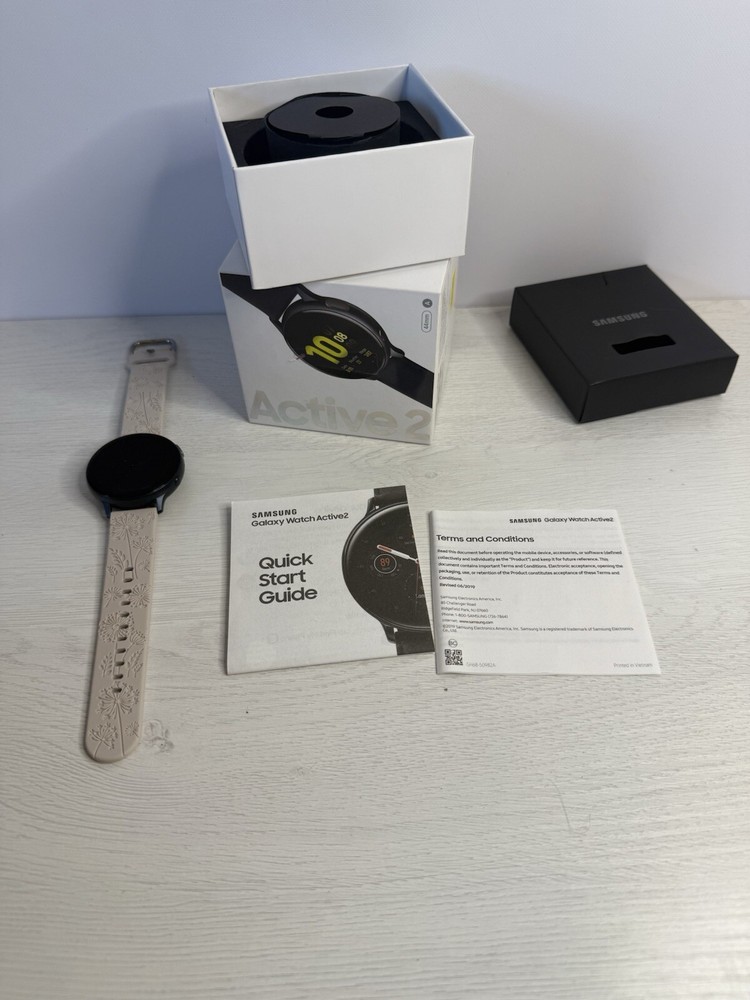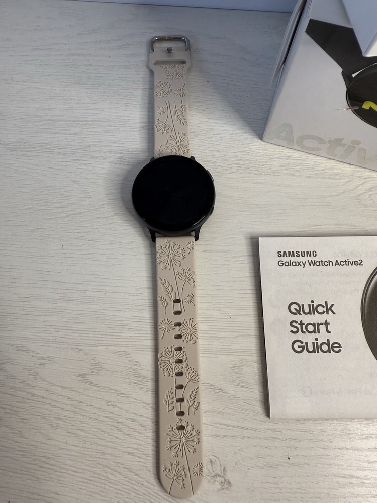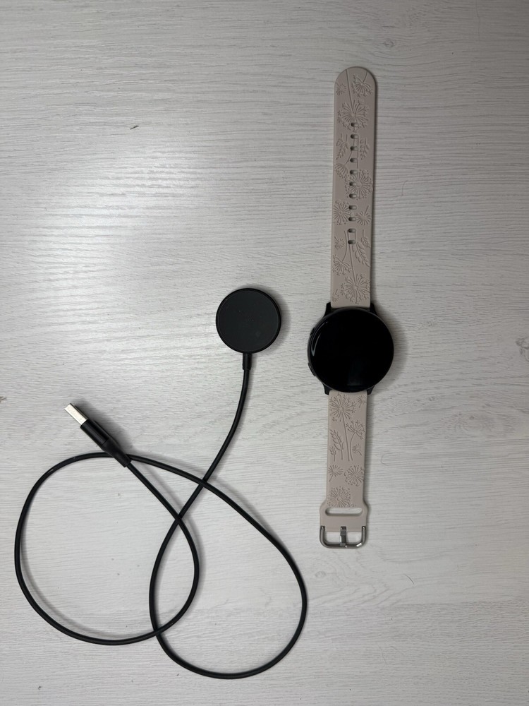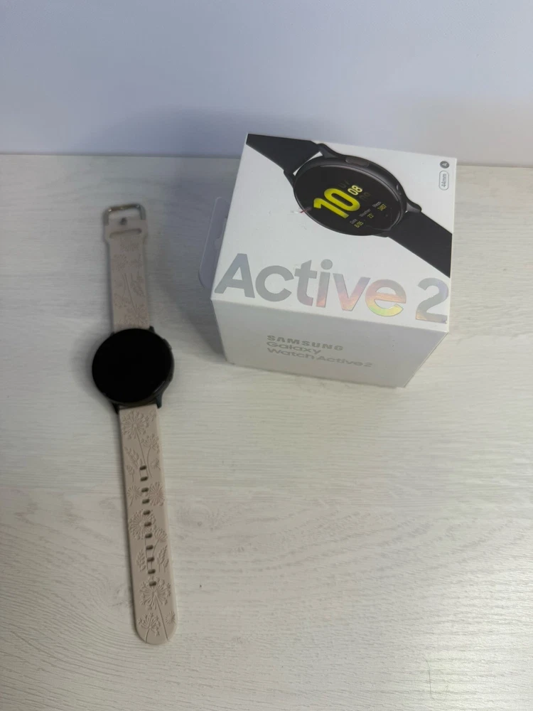 Hardly used, switch to an iPhone This Samsung Galaxy Watch Active 2 (40mm) is a stylish and functional smartwatch that comes with a beige silicone band. It is compatible with Android operating systems and has a 40mm case size. The watch is perfect for those who want to stay connected while on the go without compromising on style. It comes with a charger and is perfect for those who want to stay active and healthy. Get your hands on this Samsung Galaxy Watch Active 2 (40mm) today!
