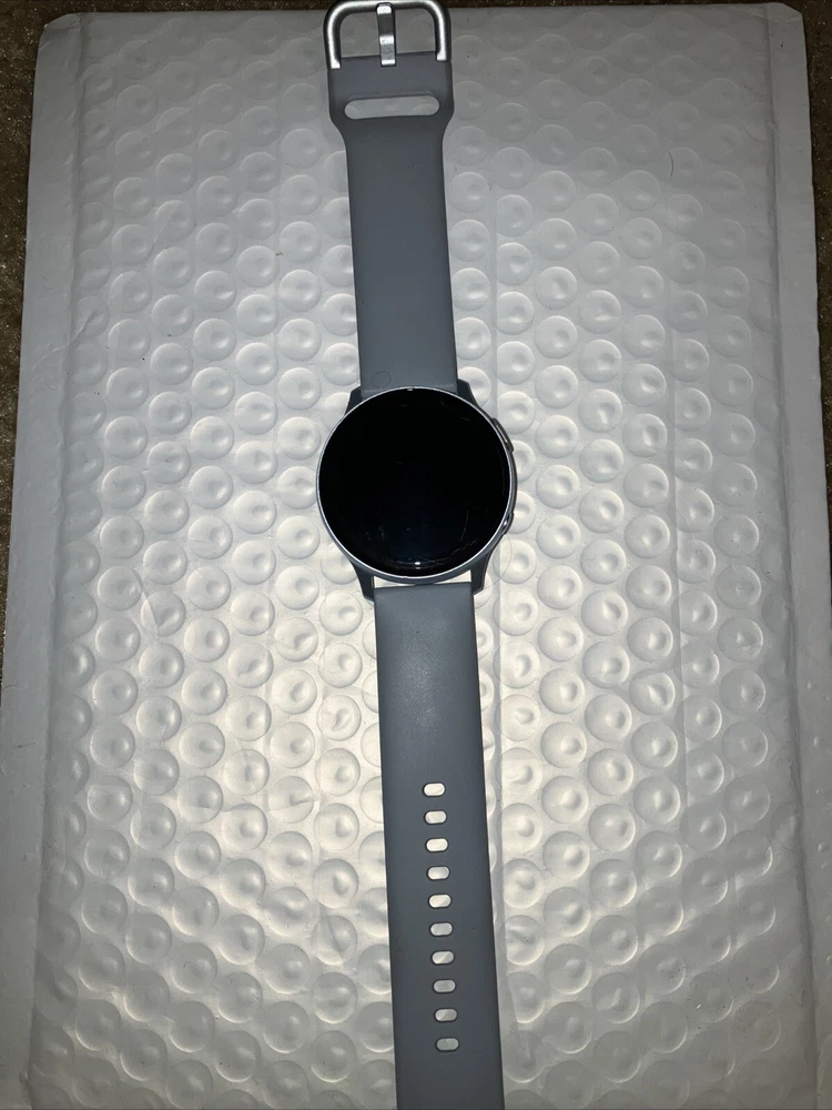 No Charger or any accessories, This Samsung Galaxy Watch Active2 is a high-quality smartwatch that offers a range of features to help you stay healthy and connected. It has a sleek silver aluminum case and a matching cloud silver band, making it a stylish accessory for any outfit. With GPS, heart rate monitor, fitness tracker, sleep monitor, and waterproof capabilities, it is perfect for keeping track of your daily activities and staying on top of your health goals. Wireless charging and 4 GB of storage capacity make it easy to stay connected and powered up throughout the day. This smartwatch is compatible with both iOS and Android operating systems and is designed to withstand the rigors of everyday use with Mil-STD 810G certification. No Charger or any accessories This is a pre-owned item that has been previously used., but otherwise It is in good condition. Please note: • The item does not come with its original packaging. • Returns are only accepted if the buyer pays for the return shipping label. Thank you for your understanding."
