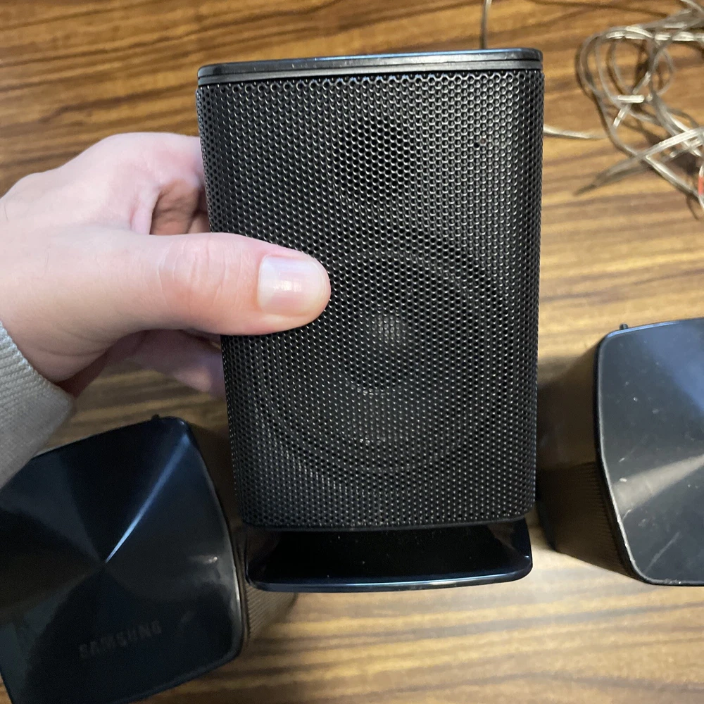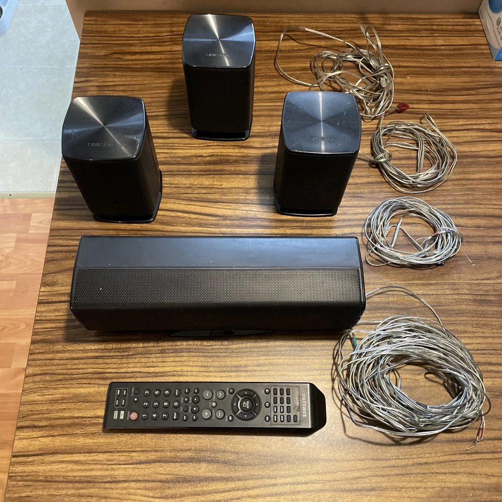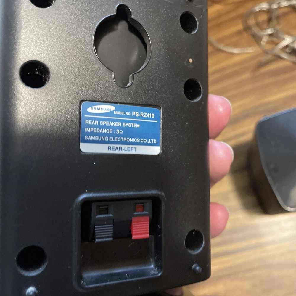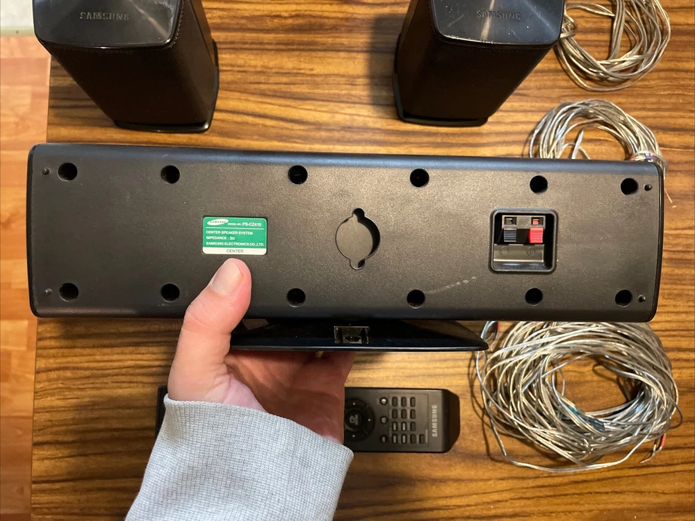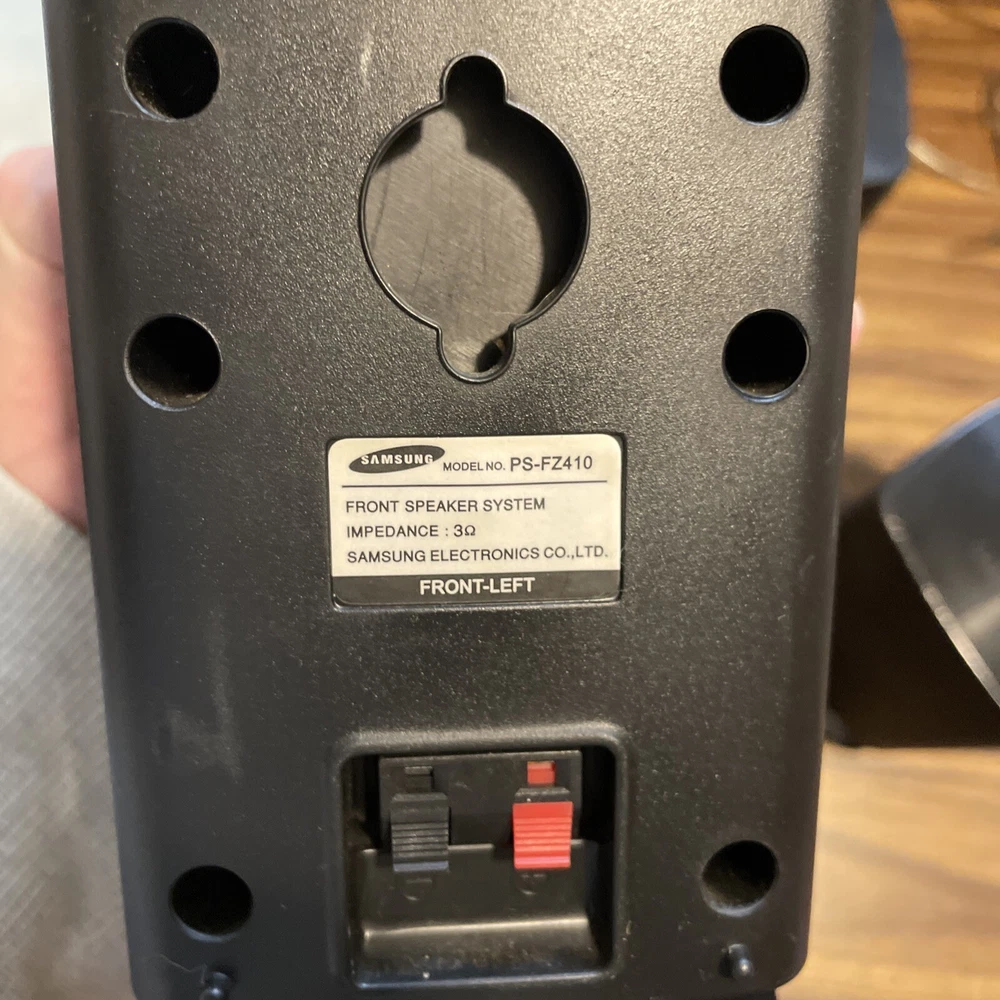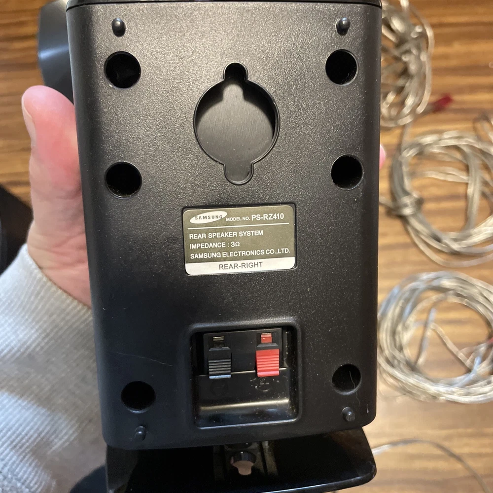 System Configuration: 5.0 Channel RMS Power: 50 W Features: Compact, Small Type: Home Theater Speaker System Shape: Rectangular Connectivity: Wired Brand: Samsung Model: PS-FZ410, PS-RZ410, PS-CZ410 Color: Black