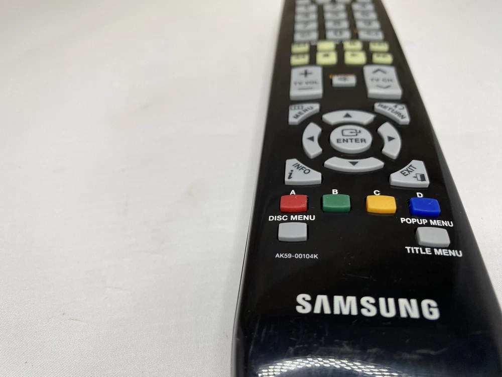 Type: Remote Control Brand: Samsung Color: Black Seller Notes: “Some signs of previous use, Tested, Arrives in bulk packaging” Model: AK59-00104K gtin13: 148401205157 UPC: 148401205157 Compatible Brand: For Samsung MPN: AK59-00104K