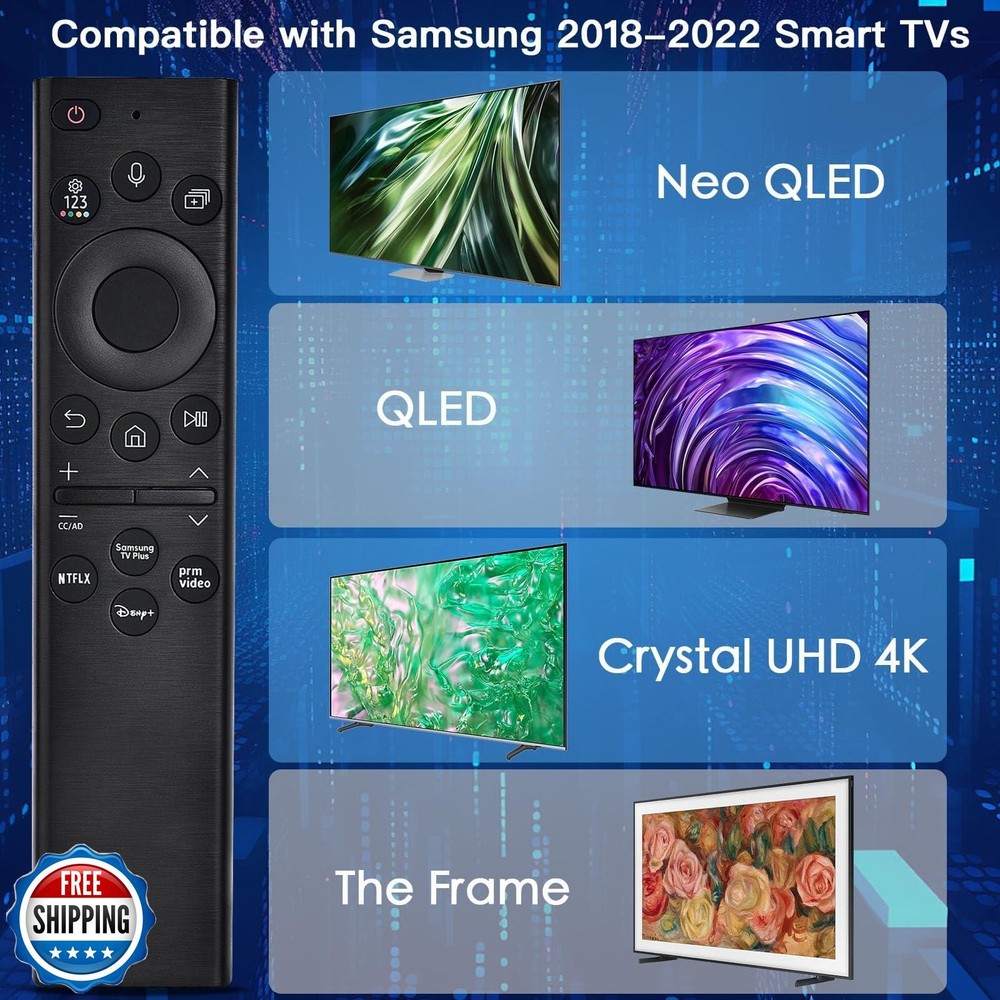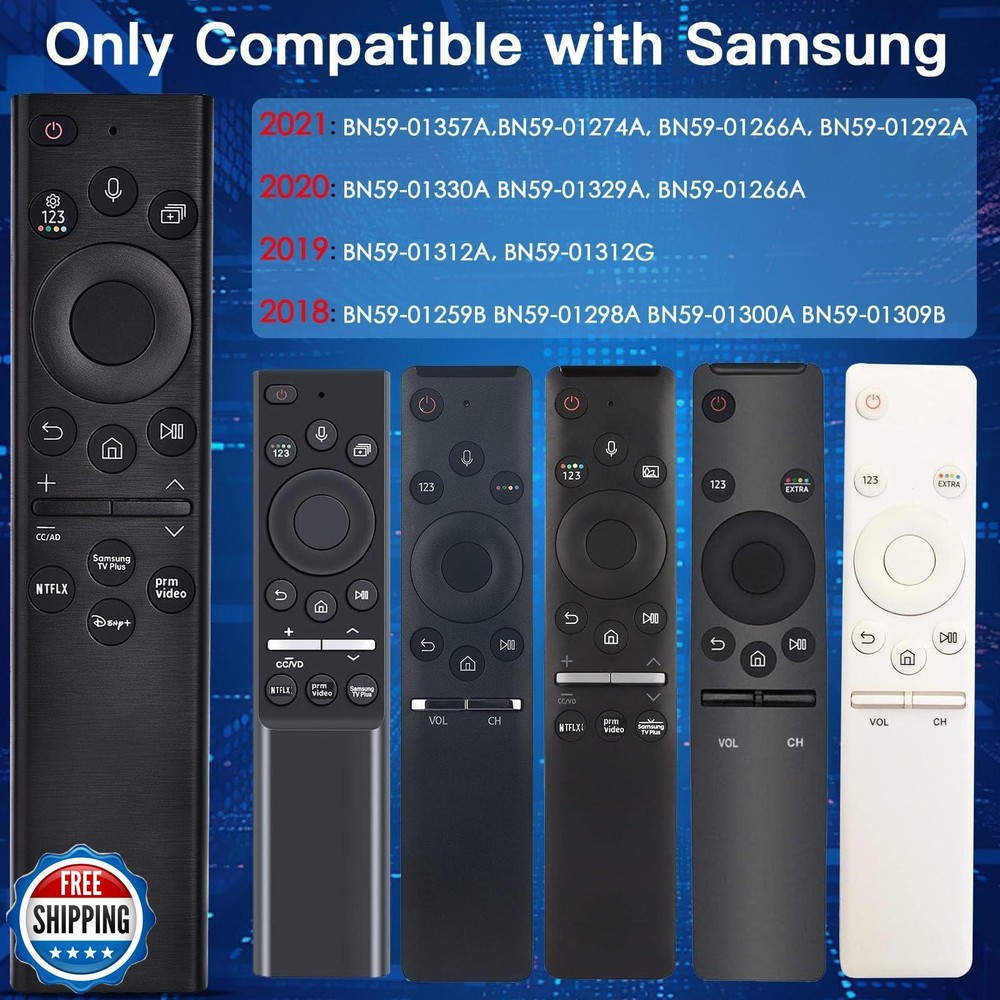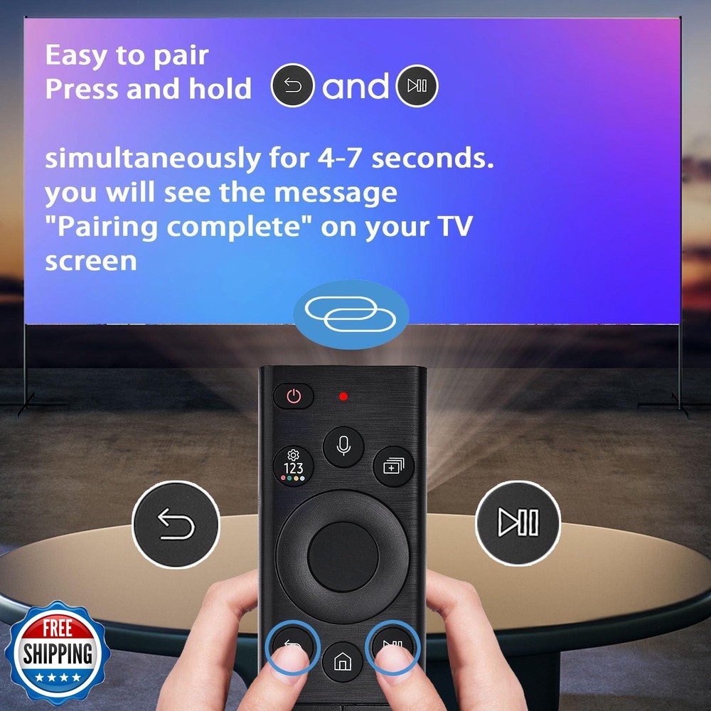 Voice Remote for Samsung Smart TV,Replacement Control Compatible with BN59-01385A,Solar Version,for Most 2018 to 2024 Samsung Crystal/UHD/QLED/Frame/QLED/ 4K 8K Smart TVs,2 Year Warranty Features 【Smart Voice Control 】Just pair it before use, and you're ready to go. With built-in voice control, you can quickly search for your favorite movies or TV shows without typing. It also lets you adjust TV settings and access features using simple voice commands. This is especially helpful for users with limited hand mobility, offering greater ease and accessibility. 【How to Activate Voice Control / Pairing Instructions 】– Insert two AAA batteries into the remote. Turn on your TV, then press and hold the Back (or Exit) and Play/Pause buttons at the same time for 5 to 7 seconds, until you see “Pairing complete” on the TV screen. Please note: some Samsung TV models may require this pairing process to be repeated twice. 【Durable & Reliable 】 Built with eco-friendly ABS material, this remote is safe and easy to use for all ages. The buttons are highly durable, tested to withstand over 100,000 presses—lasting up to 9 years with regular use. Featuring a high-performance chip, it offers accurate Bluetooth voice control from up to 40 inches away. Whether you're searching, playing, or pausing content, it responds smoothly from any angle. Upgrade now for effortless, long-lasting control over your entertainment. 【Quick Response and Durable Design】- 0.15s fast response.AFTER PAIRING,you can control your TV from multi-angle and without obstruction.Each button is built to last for more than 100,000 clicks or 9 years. 【Solar Charge】 -With solar charging technology, combined with a built-in rechargeable battery, and supports USB Type-C interface charging, which effectively solves the problem of frequent battery replacement in traditional remote controls and greatly improves the convenience of use and environmental protection. When charging normally, the indicator light on the remote control will light up to show the charging status, ensuring that users can intuitively understand the power information Shipping Free & Fast Shipping: We offer free shipping to most of the USA with a normal delivery time of 3-7 days. However, due to the current situation, additional delivery time (up to 3 weeks) may be required for some items. Alternative Carriers: We may use alternative carriers (e.g., USPS, FedEx, UPS) to ensure your package arrives safely and on time. Due to the use of multiple carriers, we are unable to provide a tracking number automatically. Handling Time: Orders are processed and shipped within 1-2 business days of receiving cleared payment. Shipping Restrictions: Shipping to Alaska, Hawaii, Puerto Rico, Guam, and other US territories may incur shipping charges or delivery restrictions. Please contact us before ordering, or your order can be refunded/cancelled. State Restrictions: Certain items may not be shipped to California due to state regulations. Contact for Tracking Updates: If you require tracking updates or have any concerns about the delivery of your order, please feel free to contact us, and we will be happy to assist you. Return Policy 30-Day Hassle-Free Returns: If you are not completely satisfied with your purchase, you can return the item for free within 30 days of receiving it for a full refund or exchange. Easy Return Process: Contact us, and we will provide you with a prepaid return shipping label and detailed instructions. No Restocking Fee: There are no restocking fees for returns. However, the buyer is responsible for return shipping costs if the return is not due to a seller"s error. Refund Processing: Refunds will be processed within 1 business day of receiving the returned item in its original condition. Feedback Your feedback is extremely important to us. We strive to provide the best products and customer service possible. If you are satisfied with your purchase, please take a moment to leave us a positive review. If you have any concerns or issues with your order, please contact us before leaving negative feedback. We are committed to resolving any problems and ensuring your satisfaction. Contact Us If you have any questions or concerns, please feel free to reach out to our customer support team. You can contact us through the eBay messaging system. We are available Monday to Friday, 9:00 am to 5:00 pm EST, and we will do our best to respond to your inquiry within 24 hours. Thank you for supporting our small family business!