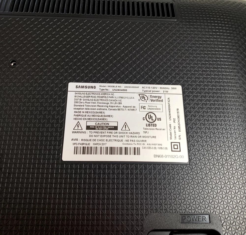 The Samsung UN24M4500AF is a 24-inch flat panel LED-backlit LCD Smart TV with a sleek design in black. It offers a maximum resolution of 720p (HD) with a refresh rate of 60 Hz, providing clear and smooth visuals. This model, manufactured in 2017, comes with some streaming apps pre-installed and features 2 HDMI ports, making it easy to connect multiple devices. Additionally, it is wall-mountable and has audio/video inputs including USB and HDMI, offering flexibility in connectivity options for an enhanced viewing experience.