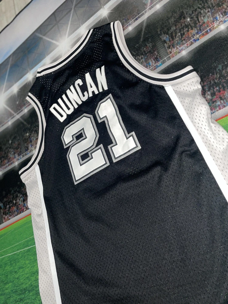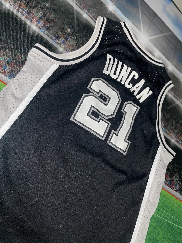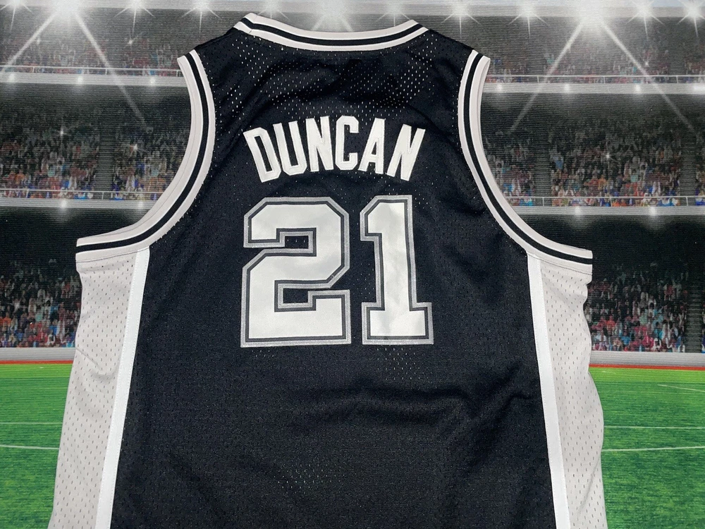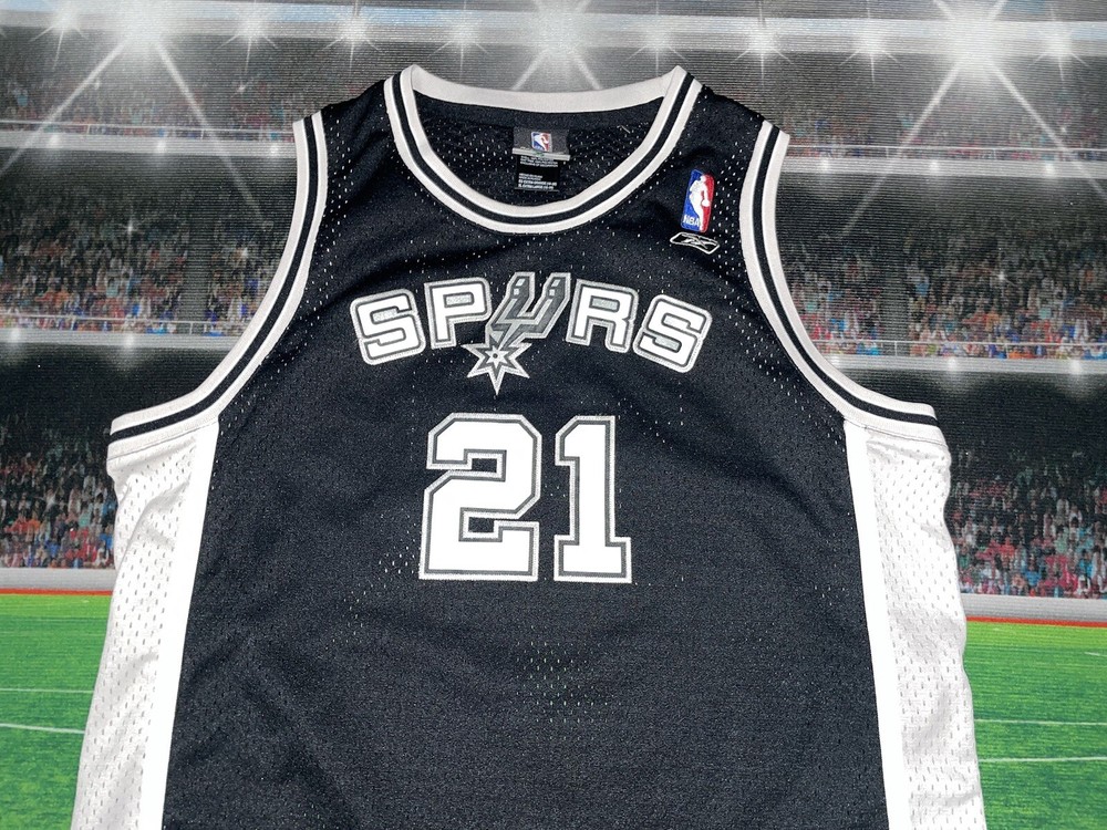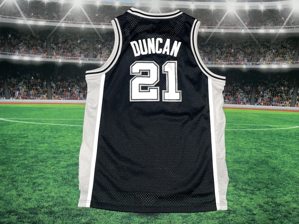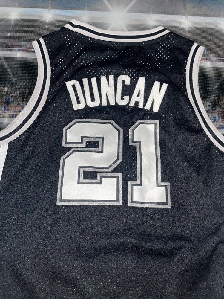Show your love for the San Antonio Spurs and basketball legend Tim Duncan with this preowned Adidas jersey. The black XL jersey features Duncan's number 21 and is perfect for young fans. The jersey is made for boys and is a size 18/20. It is perfect for game day or for adding to your collection of sports memorabilia. The jersey is in great shape and ready for wear. Get your hands on this must-have piece of fan apparel today!