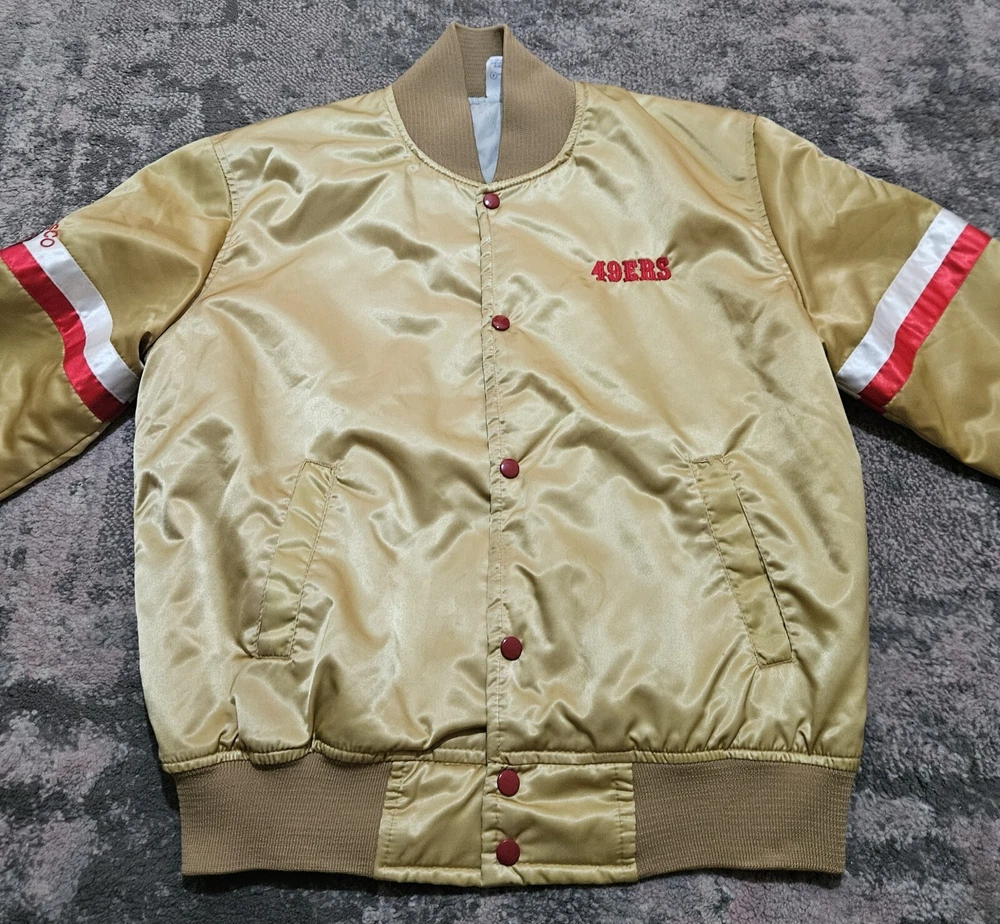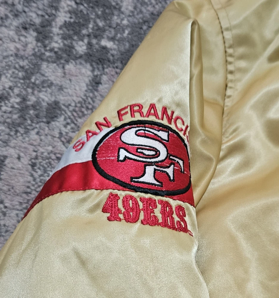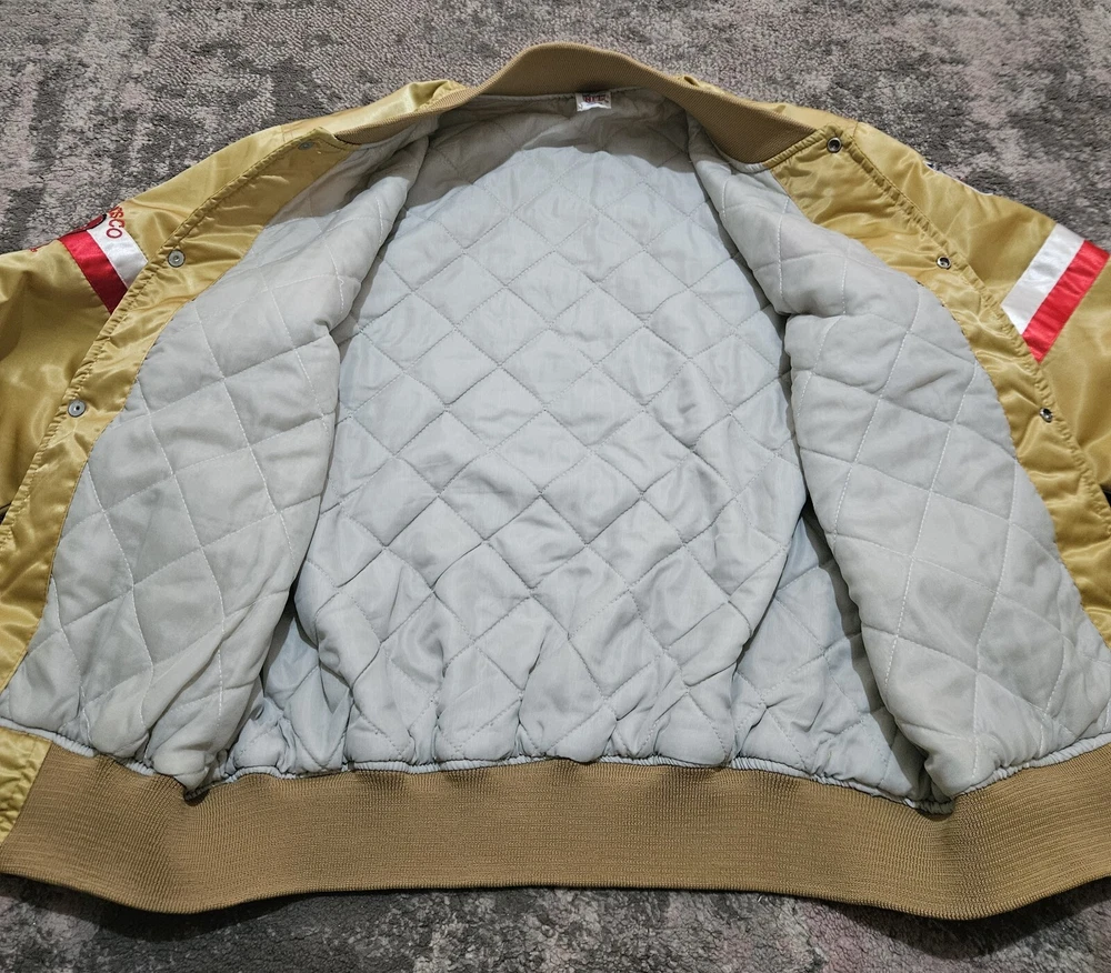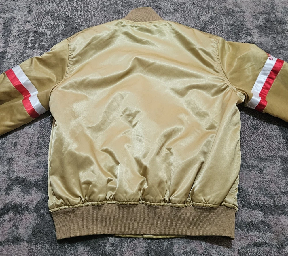San Francisco 49ers Satin Bomber Jacket NFL Gold Adult Medium Locker Line 90s Great Condition Please refer to pics for approx measurements if required before purchasing