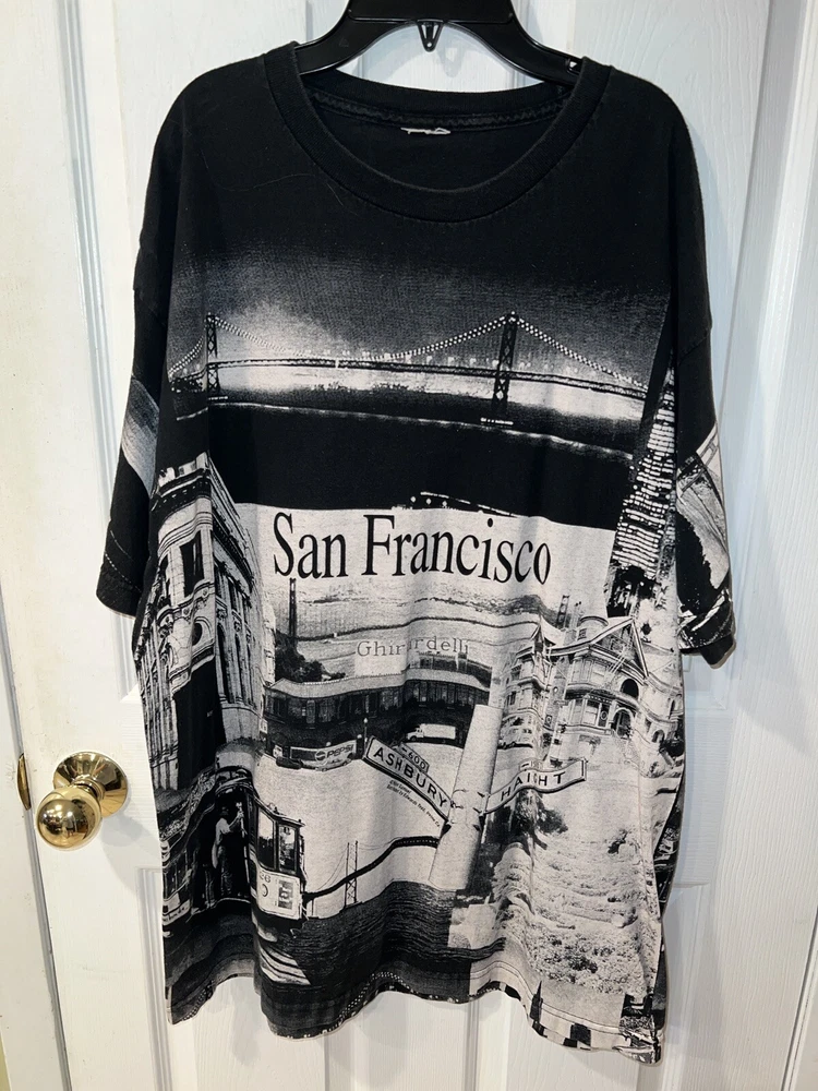 VTG San Francisco All Over Graphic Print T-Shirt Haight Ashbury Edwards Teez XL Pit to pit 25” Shoulder to hem 34” No size tag so please double check measurements