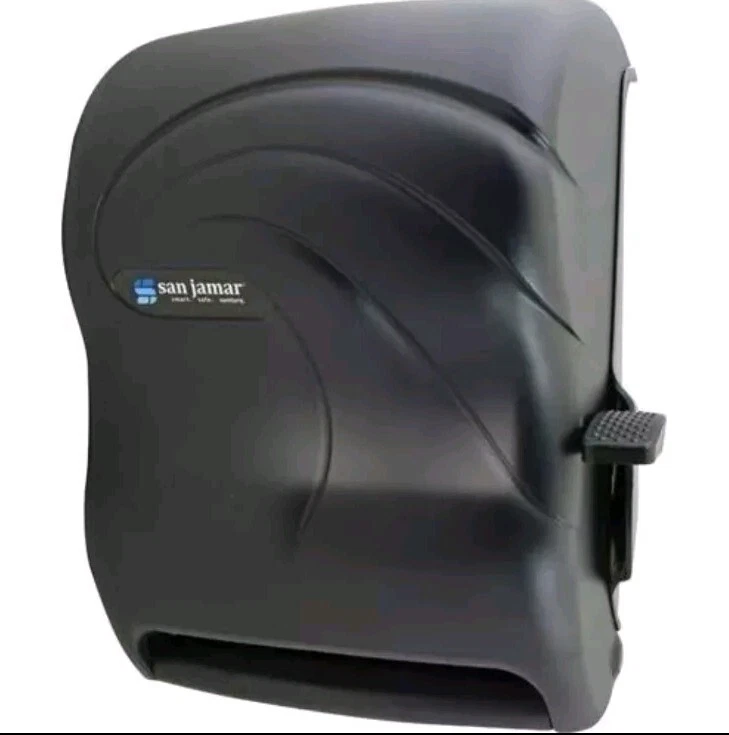 Spend less time changing out paper towel rolls with the San Jamar Lever Roll Paper Towel Dispenser (T1190TBK). This paper towel dispenser has a large capacity and will dispenser any quality of universal roll towel paper. Operated via lever, the paper towel dispenser is easy to use, even in fast-moving high traffic environments. Constructed of durable, break-resistant plastic, this paper towel dispenser is efficient and effective for years of use.