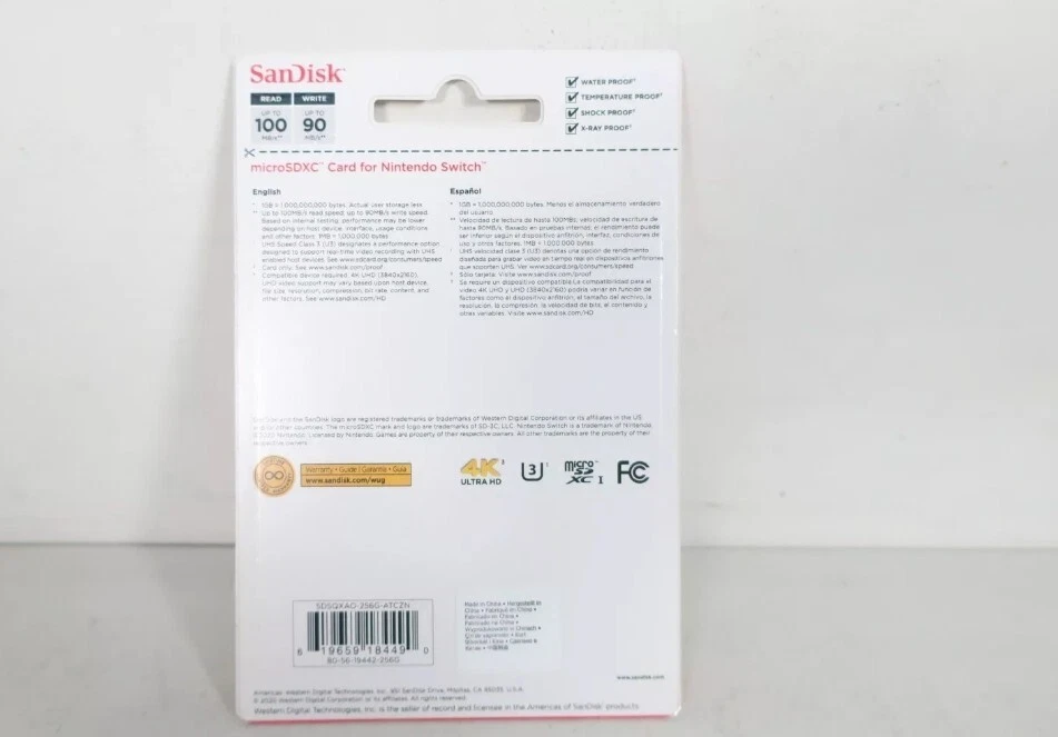 This SanDisk 256GB MicroSDXC Card is the perfect accessory for your Nintendo Switch. With a UHS Speed Class 3 rating, it provides fast loading times for your games and accessories. The card features a yellow color and is compatible with a variety of products, including game cards, memory cards, and console accessories. In addition to its water-resistant features, the card has a wireless range of MicroSDXC Card for Nintendo Switch and connectivity via MicroSDXC CARD. It weighs only 0.08 lbs. and was manufactured in 2020. This memory card is a must-have for any Nintendo Switch user looking to expand their storage capacity.