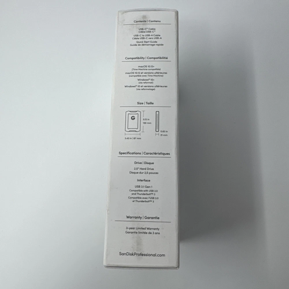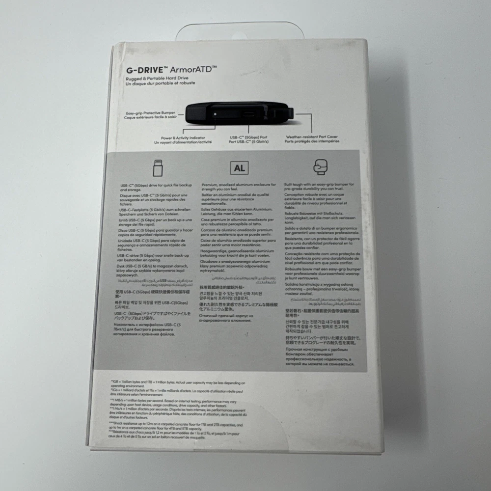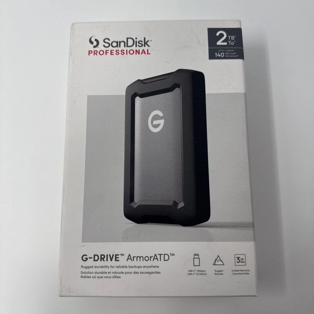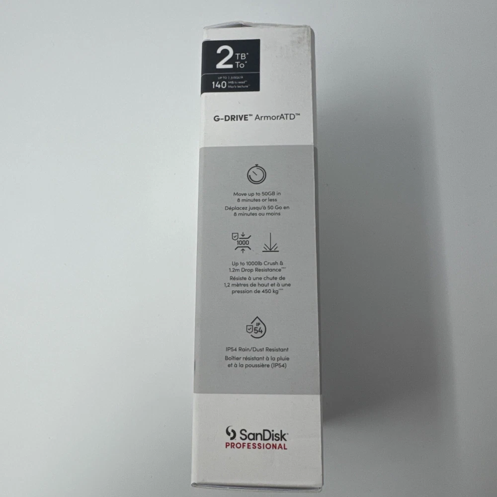 This SanDisk Professional G-DRIVE ArmorATD USB-C external hard drive is designed for laptop, PC, and Mac users who require high-speed storage solutions. With a storage capacity of 2TB, it is perfect for storing large files, documents, and media. The drive type supported includes external SSD and HDD, with a rotation speed of 1000 RPM and read speed of 140MB/s. The G-Drive product line from SanDisk offers removable, shock-resistant, and water-resistant storage solutions. It is compatible with PlayStation 3 and 4, and features adaptive memory technology, a media player, and a heatsink. The USB specification includes USB 3.0, Thunderbolt, and USB-C interfaces, making it a versatile option for various devices. This external hard drive is an excellent choice for those who require rugged and reliable storage solutions.