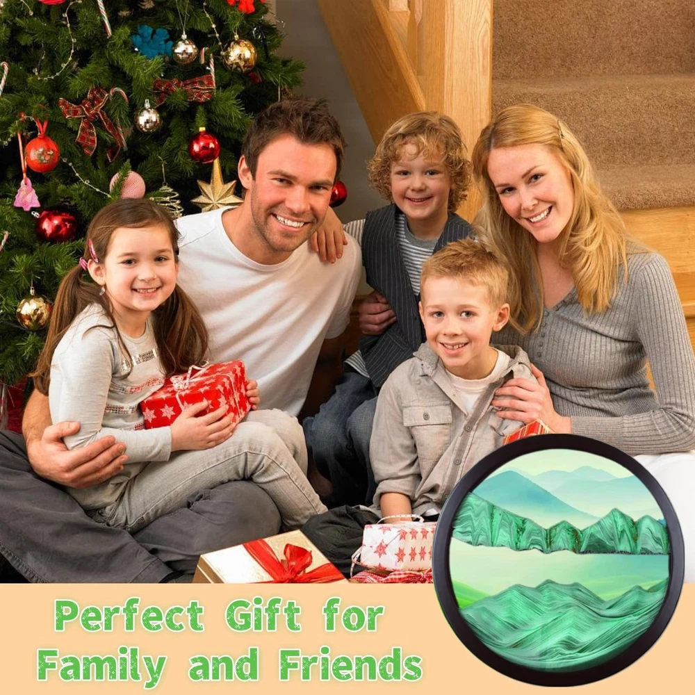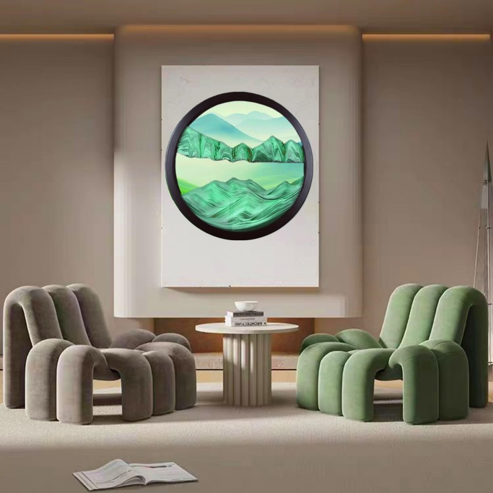 Sand Art Liquid Motion, Moving Sand Art Décor, 3D Wall Mounted 360° Rotate Sculpture, Wall Art Deep Sea Sandscape Room Decoration, Relaxing Mood Home Office Work Decor (Green, 23.6'') 【High Quailty】Lead-free high transparency tempered glass as clear as crystal, allows you to fully enjoy the beauty of quicksand. The detail is carefully screened sand, colorful, levels clearly demarcated, flow out the pattern of 3D effect is excellent. The frame is made of solid wood frame, strong and durable, fresh and simple, beautiful and generous. 【Pefect Home Decoration Ideas】 With excellent aesthetic color matching and 3D Natural Landscape Dynamic Art design, this modern wall art is easy to mix and match different home styles to create a welcoming vibe into any space, like living room, bedroom, kitchen, bathroom, dining room, office hotel, restaurant bar, or any other occasion. 【Stress Relieve Decor】Moving sand pictures create a new sand picture with each turn.The sand never makes the same design twice. Watching the colored sand slowly tumble down the circle is relaxing and calming to the mind, which can relieve stress, relax your eyes,cultivate patience, give you unexpected surprise and happiness. 【Easy To Install】 The hook is designed on the back of the product, You just need to punch holes in the wall, fix the Moving Sand Art Bracket Brace and hang the product directly, It is strong, simple, convenient, tough, fine workmanship, Not easy to rust. 【Mutiple Sizes & Creative Gift 】We offer three sizes, Small size is 11.4*11.4 inches; medium size is 17.3*17.3size; large size is 24*24 inches. Perfect size suitable for various occasions. Exquisite 3D quicksand paintings are great gifts, not only for couples, but also for boyfriend and girlfriend, anniversaries, birthdays, Mother's Day, Thanksgiving, Graduation, Valentine's Day, Christmas and other important days.