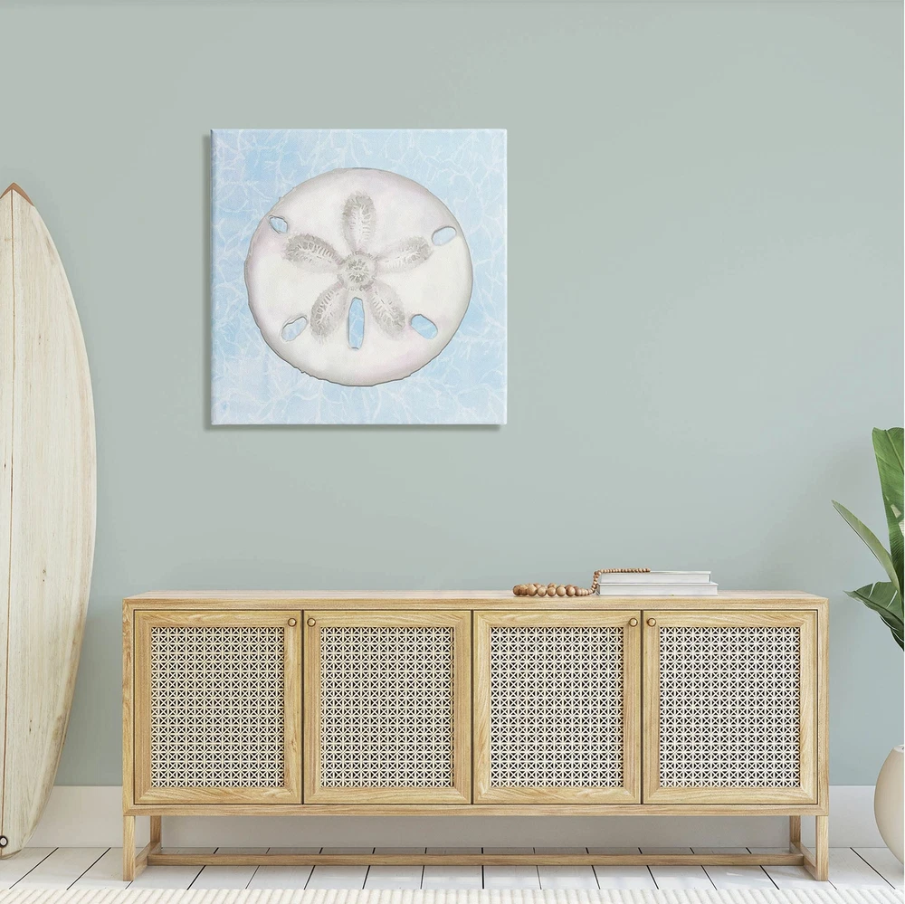 Stretched Canvas Sizes Include Standard: 17 x 1.5 x 17 Large: 24 x 1.5 x 24 X-Large: 30 x 1.5 x 30 Oversized: 36 x 1.5 x 36 Wall Art is Ready to Hang - No Installation or Hardware Needed. For Easy Set Up Lean or Layer Artwork on Shelf or Against Wall. Our stretched canvas is created with the highest standards. We use only the highest quality inks and canvas on our in house Mimaki printers, and then hand cut and stretch each piece over a 1.5 inch thick wooden frame for hanging. Made In USA. Artwork Relates To: Seashell, Sea Life, Animal, Invertebrate, Aquatic, Sand Dollar Design by Diannart