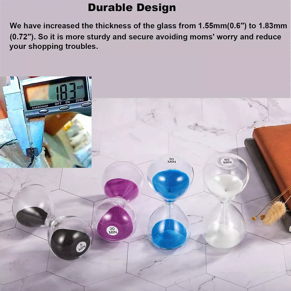 SuLiao Sand Timer 1 Minute Hourglass, Gold Sand Watch 1 Min, 5.1 Inch Sand Clock one Minute, Hour Glass Sandglass for Kids, Classroom, Home, Desk, Office Decoration SAFETY HOURGLASS SAND TIMER: The large sand timer 1 minute made by friendly high borosilicate glass,100% hand-blown made clear glass. And each one has a number of time mark. You can easy to distinguish which timer for which usage. PRECISE TIMER: This reloj de arena 1 minuto is mainly made for games, which is not a precision timing device, so there is time deviation. But SuLiao 1 min hourglass has achieved the highest quality ±10% industry standard in the USA. PRACTICAL SAND TIMER: It is both a work of art and a useful time tool. SuLiao Sand Timer provides an optimal time frame for work and rest. Meanwhile, fit for your Home, Office, Desk, Science, and Education. Makes a thoughtful gift for any occasion. DURABLE DESIGN: We have increased the thickness of the glass from 1.55mm to 1.83mm. So, the sand timers set is not easily broken, and it will not easily cut your children's hands. NONEY-BACK GUARANTEE: Our kids hourglass timer sand clocks 100% has been strictly tested by the factory. If you are not completely satisfied with it, pls CONTACT US BEFORE REVIEW and we will provide a full refund for you! Description: ▪ Each sand hourglass timer is with different bright colors sand, durable and shock-resistance. ▪And each one has a number of time mark. easy to distinguish which timer for which usage ▪ Perfect for timing cooking, games, exercising, especially for helping kids understand the concept of time with this visual angle. It also can be used as a home/office decoration. ▪ A quite great gift for your kids and friends. Features: ▪ Color:Gold Sand ▪ Material: high borosilicate glass, and color Sand. ▪ Size: About 5.1×2.4x2.4 inch each one. Weight: 2.6oz. ▪ Counting time: 1 minute hourglass sand timer, each sand timer is with a ±10% time deviation. ▪ Condition: 100% brand new and high quality Colorful Hourglass Sandglass Sand Clock Timers. About SuLiao In 2012 Su and Liao discovered a mutual love for hourglasses completely by accident. The couple was brainstorming ways for Liao to continue to be a stay-at-home Mom and still have an income. Before long they had created an online store featuring products made in their hometown. Along the way, Liao was able to find a gentleman who produced gorgeous sand timers from the workshop on his farm. After visiting the workshop to learn how the hourglasses were made and see just how stunning they were in person they realized they might be onto something. The hourglasses quickly became the star of the online store. The next year " SuLiao " brand was born. SHIPPING - We offer FREE shipping on all orders! - We ship within 3 business days of payment, usually sooner - We use a selection of shipping services such as UPS, FedEx, USPS etc - We only ship to the lower 48 states, no APO/FPO addresses or PO Boxes allowed International buyers – please note: Import duties, taxes, and charges aren't included in the item price or postage cost. These charges are the buyer's responsibility. - Please check with your country's customs office to determine what these additional costs will be prior to bidding or buying. - We have confidence in our products, but if you are not fully satisfied please contact us within 30 days of purchase and you will get full refund. * Order Cancellation Policy ** You can return a product for up to 30 days from the date you purchased it. 1. The seller reserves the right to cancel the special case only due to eBay cancellation fee. 2. The decision of seller is the final. 3. The seller will respond to the cancellation request within 2 business days. Please wait for the result of cancellation. 4. In case the cancellation is not completed by some reasons, the buyer can follow the options below to get the refund. 4.1 The buyer can reject the item when it arrives. 4.2 The buyer can send the item back to the seller within 30 days If the buyer receives item (USA Shipment ONLY). The seller will provide the FREE return label to the buyer when the buyer opens " Return Item" case on eBay by using the reason as "Change my mind" ONLY. 5. When buyer has placed the order. The order will be processed and completed by automatic warehouse system within 5 minutes. In case that buyer sends the cancellation request after 5 minutes of placing the order, the request will be rejected. **Sending direct message to cancel the order is not allowed for every case.* Return Policy For the return case - If buyer would like to return the items for refund or replacement, please CONTACT SELLER to receive the free return label from seller. The refund or replacement will be processed with the tracking number of return label which is provided by seller only. The other ways of return which are not approved by seller will not be processed for the refund or replacement. CUSTOMER SERVICE - We try our best to make sure every customer is completely satisfied. - If there's a problem, feel free to message us! - We're happy to help.