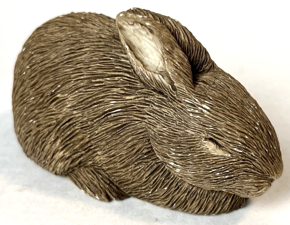 VTG Sleeping Rabbit Bunny Figurine Sandra Brue Signed 1986 Sandicast Wildlife