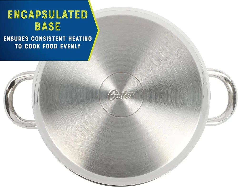 Store New Arrivals Add to Favorite View Feedback Contact Sangerfield 12 Piece Stainless Steel Cookware Set W/Kitchen Tools Description Item model number 82952.12RR Global Trade Identification Number 00085081061331 Closure Material Glass Color Stainless Steel Included Components One 1.7-quart stainless steel saucepan with lid, one 3.2-quart stainless steel saucepan with lid and steamer insert, one 4.3-quart stainless steel sauté pan with lid, one 6.5-quart stainless steel Dutch oven with lid, one nylon spoon, one slotted nylon turner, and one nylon ladle Material Stainless Steel Country of Origin China Is Dishwasher Safe Yes Item Weight 15.87 pounds Is Oven Safe No Handle Material Stainless,Stainless Steel,Steel Size 12-Piece Cookware Set Material Type Free PFOA Free, PFAS Free, Cadmium Free, Lead Free, PTFE Free, PFOS Free, APEO Free, Nickel Free, Bisphenol-A (BPA) Free Special Feature Dishwasher safe Compatibility Options electric,gas,induction,induction stovetops Number of Pieces 12 WHAT'S IN THE BOX: One 1.7-quart stainless steel saucepan with lid, one 3.2-quart stainless steel saucepan with lid and steamer insert, one 4.3-quart stainless steel sauté pan with lid, one 6.5-quart stainless steel Dutch oven with lid, one nylon spoon, one slotted nylon turner, and one nylon ladle EVERYDAY FAMILY FAVORITES: Complete collection of pots, pans, and cooking utensils to cook your family's favorite meals. Perfect for sautéing, simmering, boiling, steaming, and more. ENCAPSULATED BASE: Stainless steel construction with encapsulated aluminum core ensures efficient and consistent heating to cook food evenly MIRROR-POLISHED EXTERIOR: Beautiful stainless steel exterior resists rust and discoloration and adds luster to any kitchen INDUCTION SAFE: Safe on gas, electric, halogen, glass, and induction stovetops Designed with utility and beauty in mind, the Oster Sangerfield 12-piece Stainless Steel Cookware Set with Kitchen Utensils is a collection of useful pots, pans, and cooking utensils to serve up family favorites and new recipes every day. Constructed from mirror-polished stainless steel, each pot and pan has an encapsulated aluminum base that distributes heat efficiently to cook food evenly. The beautiful polished exterior resists rust and is easy to clean, perfect and convenient for everyday use. Safe to use on all cooktops, each piece feature dual-riveted handles for a safe and comfortable grip when lifting and serving. The tempered glass lids provide visibility to help monitor cooking progress. The set comes with three nylon cooking utensils that do not scratch and scrape the cookware's interior. Each cooking tool has an ergonomic handle for a light but comfortable grip when mixing and serving. Dishwasher safe. Do not put in a conventional or microwave oven. ABOUT US We offer the best prices around on high quality products. Our E-store includes media such as books, movies, music and games while offering electronics, toys, sporting apparel, clothing, tools, general home, garden items and more. SHIPPING We are always working hard to ensure your package arrives as soon as possible. Please understand that some factors like weather, high postal traffic, and the performance of shipping companies are outside of our control. We offer free shipping to the lower 48 states and ship within 2 business days of payment, usually sooner. We do not accept P.O. Boxes. Please provide a physical address. For shipping outside of the continental USA, we only use eBay's Global Shipping Program.The item is shipped to KY and then sent to the rest of the world. International customers are responsible for all duties and taxes. Continue to check out in order to calculate costs for shipping the item to your country. Messages regarding eBay's Global Shipping Program MUST be directed at eBay EXCLUSIVELY. RETURNS We offer a 30-Day Return Policy on items which you are not completely satisfied with. You have the option for a full-refund or an exchange of the item. No returns are available on items shipped outside of the USA. PAYMENT We accept PayPal. CONTACT US This page content is yet to come Please ad us to your favorite seller and visit again later Thank You CUSTOMER SATISFACTION We try our very best to make sure every customer is completely satisfied. If there's a problem, message us! We're happy to help. WE ACCEPT Copyright © 2021 AutoDS. | All Rights Reserved