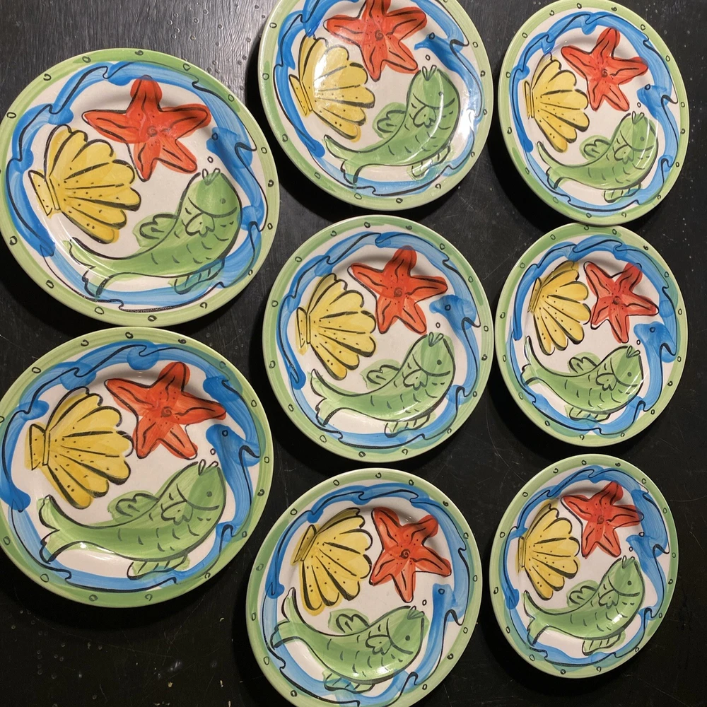 Plates are in very good condition. No chips, cracks or color loss. Set of 8. 7 7/8β salad plates. Whimsical hand painted. Clearly stamped on back. All measurements are in pictures. Ships the next business day after paymentπ