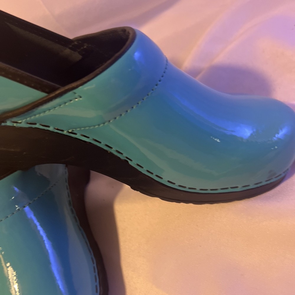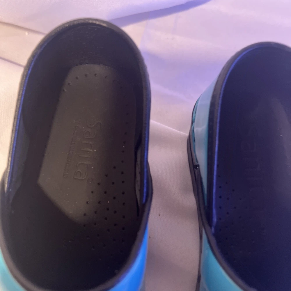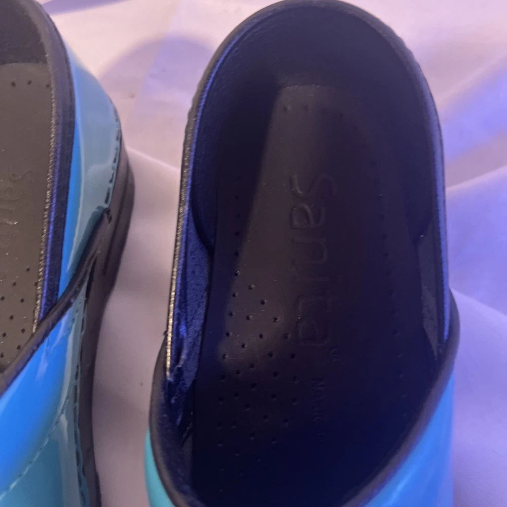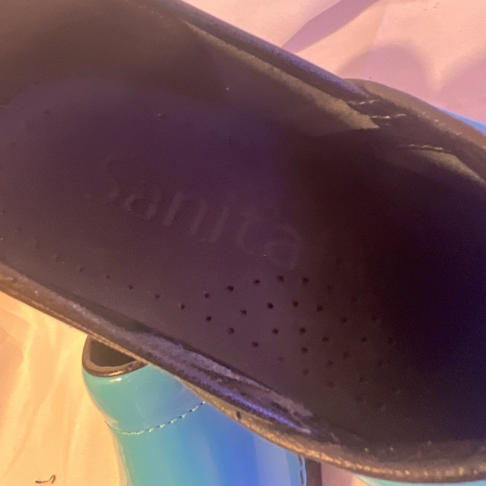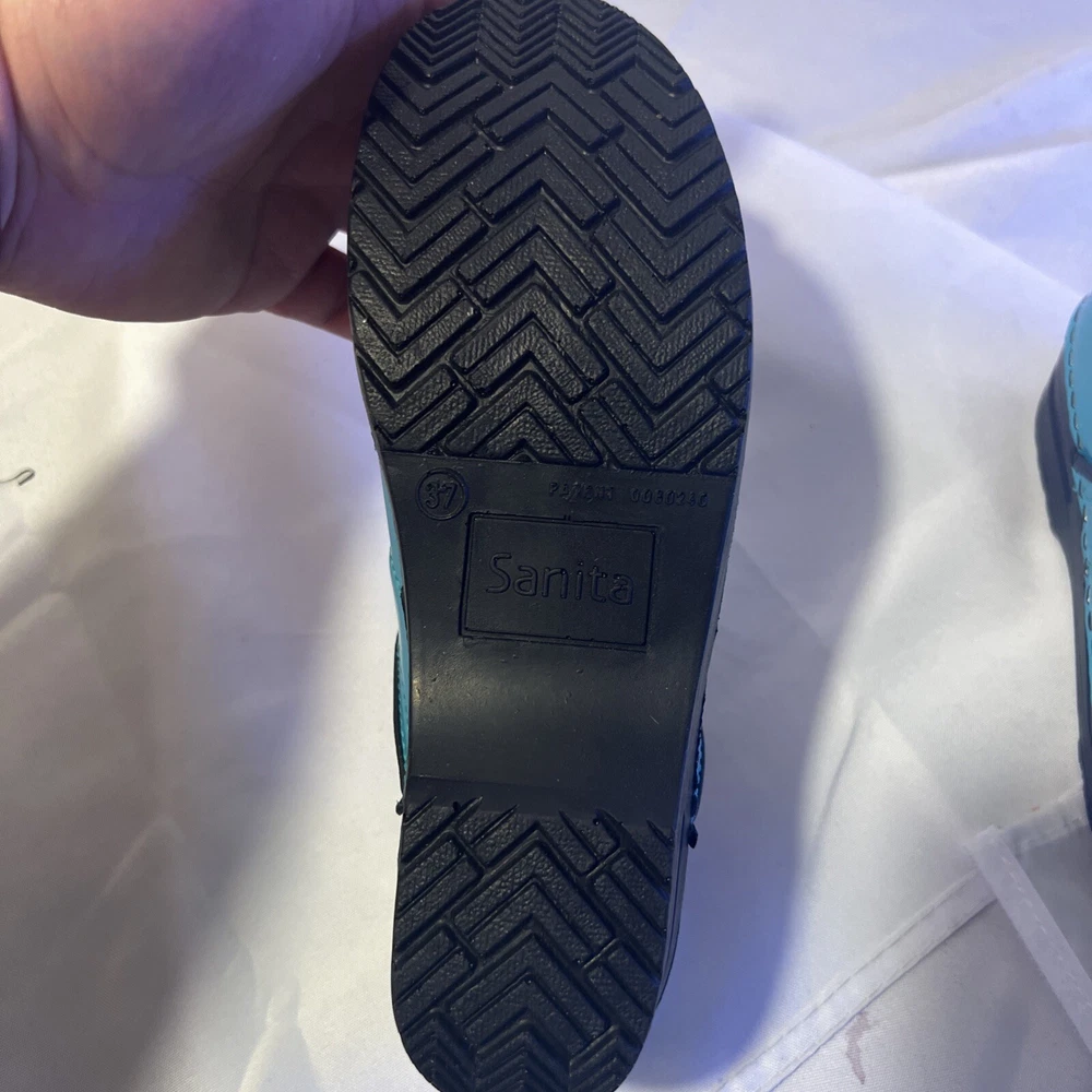 Slip into comfort with these Sanita clogs, designed with both style and ease in mind. The turquoise slip-on clogs feature a classic geometric pattern that adds a pop of color to your workwear ensemble, while the durable rubber outsole provides stable traction for all-day wear. With a size 6.5 US (37 EU), these clogs are tailored for a snug and comfortable fit, perfect for nurses and those on their feet constantly. Crafted with a smooth leather upper and a cushioning leather insole, these low-top clogs boast a mid-height block heel that ensures stability without compromising on style. The round toe design allows for ample wiggle room, and the slip-on closure ensures quick and easy wear. Ideal for both fall and spring, these Sanita clogs are a practical choice for those seeking a blend of comfort and chic.