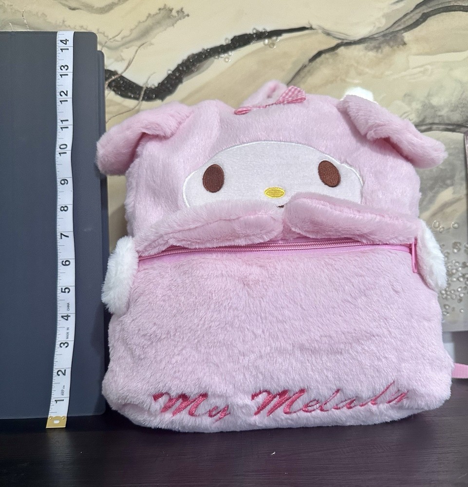 The Sanrio My Melody Backpack is a 12" kids backpack featuring the popular sanrio character. Made of lightweight plush material, this pink school backpack is designed for casual occasions and comes with adjustable straps and front pocket for convenient storage. The limited edition design, choice for kids. With its cute characters and quality construction, this backpack is sure to delight any young fan of this adorable toy fan looking for a stylish and functional accessory.