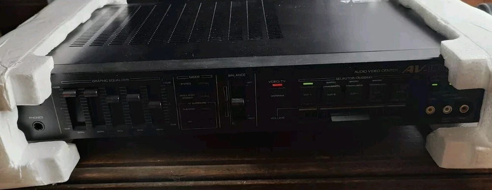 This is a Sansui AV-C10 Audio Video Center in black color. It features AUX audio inputs for connecting external devices. The model is AV-C10 and it belongs to the A/V Receiver type with surround sound formats. This consumer electronics product offers a high-quality audio and video experience.