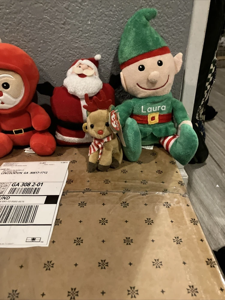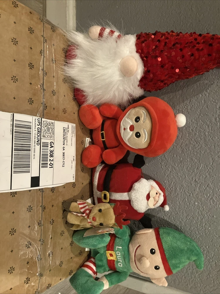 Santa 3, Elf, Raindear Plushies. Condition is New. Shipped with USPS Ground Advantage.