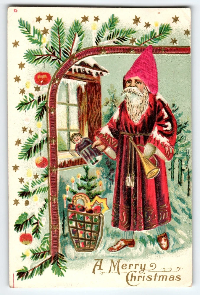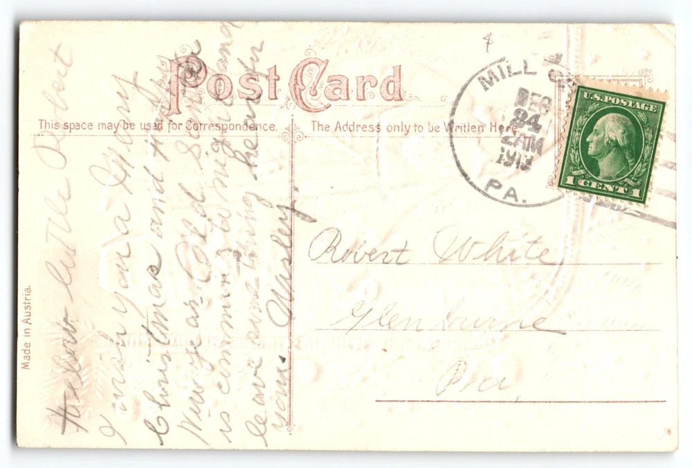 Posted with 1913 cancel. Antique original vintage post card. Silk applied to hat. Has corner dings and age wear. Stock #santa337. Additional postcards are in our store. All post cards are old originals and may or may not have writing on back.