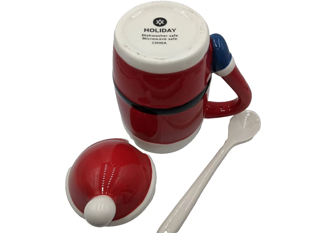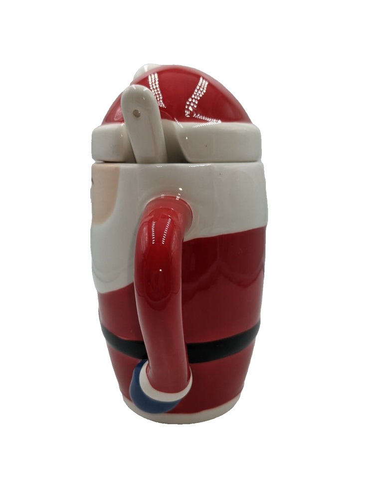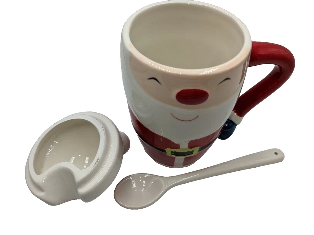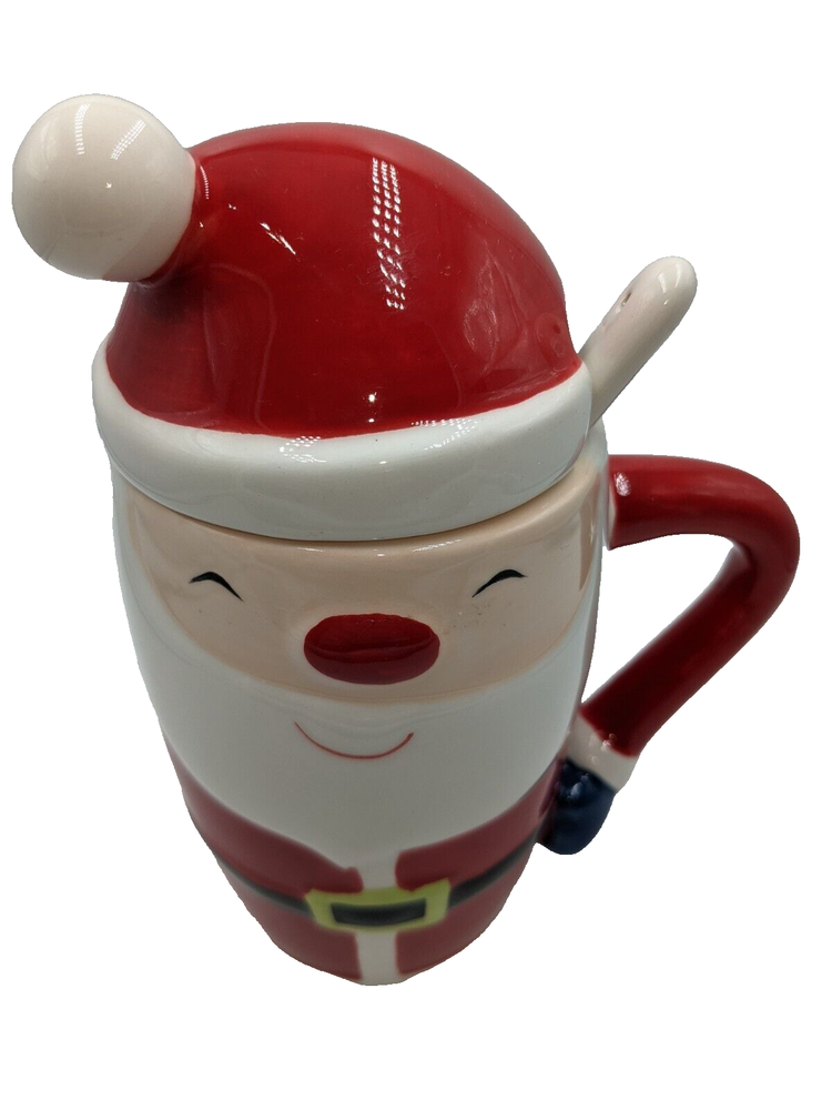 Holiday Santa Claus Hot Chocolate Latte Mug w/Lid & Spoon Ceramic 6.5" High. Package has been opened to photograph the mug, but it is brand new and never used, no damage. All of my items are carefully packed for shipping, no matter their value - $5 items are wrapped with the same care as a $200 item. My goal is to have your purchase arrive safely. Large, heavy and fragile items are harder to use combined shipping with but just ask if you would like to purchase more than one item and I am more than happy to do so if feasible. Measurements are approximate or as close as I can get. Also, the color you see many not be the exact color depending on your computer or phone settings. Unpaid items will result in the buyer being blocked from further purchases. Please remit payment right away so we can get your item shipped out quickly.