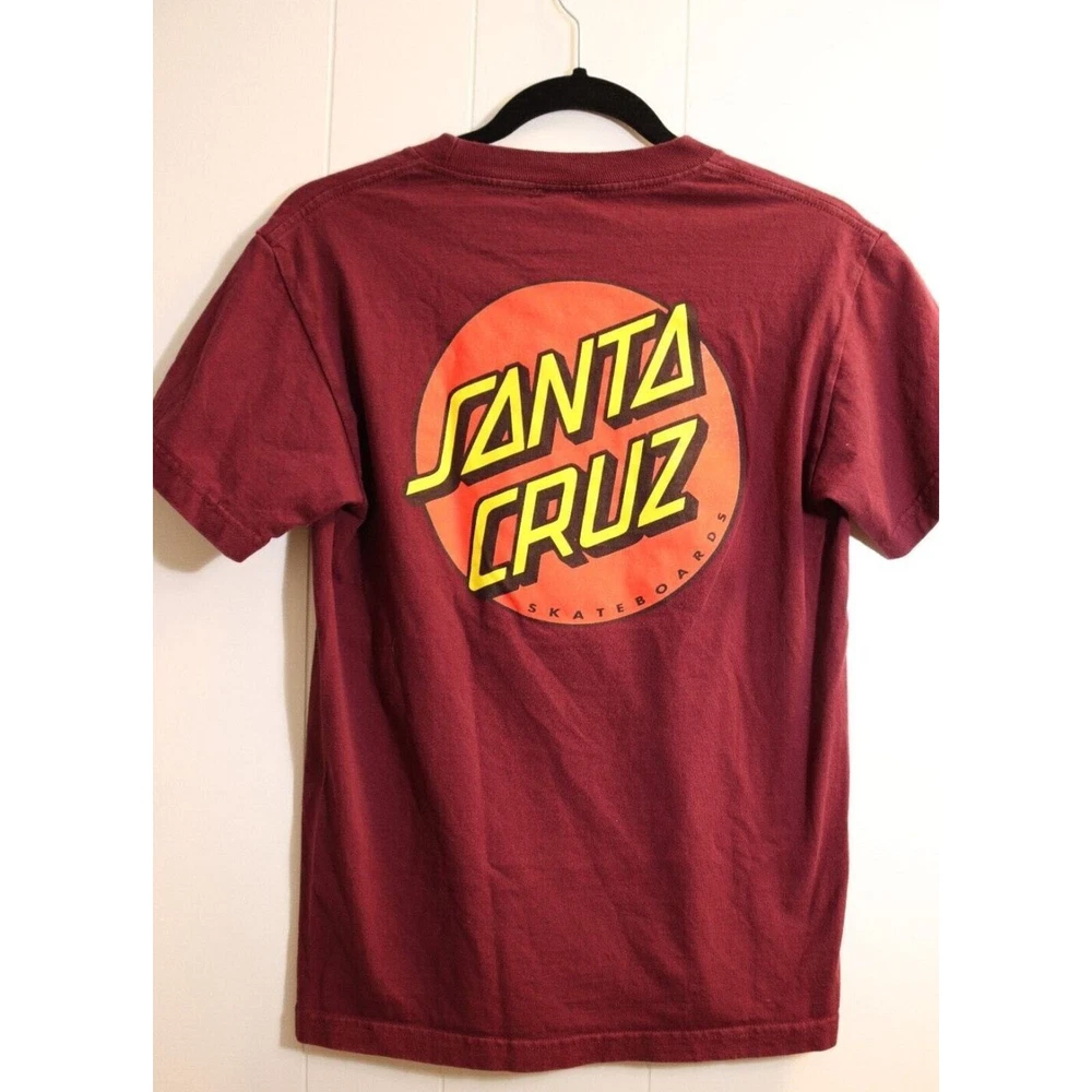 Secondary Color:OrangeAccents:T-shirtSleeve Length:Short SleeveMaterial:Cottongtin13:Does Not ApplyDepartment:MenUPC:Does Not ApplyCountry/Region of Manufacture:NicaraguaCharacter Family:Santa Cruz Skate BoardVintage:NoTheme:90s, American, Classic, Skateboard, SkaterSize:MAdditional Text On Back:SkateboardsBrand:Santa CruzFeatures:Spell OutType:T-ShirtSize Type:RegularCharacter:Santa Cruz, Santa Cruz SkatboardsStyle:Graphic T-ShirtNeckline:Crew NeckFit:RegularColor:Maroon
