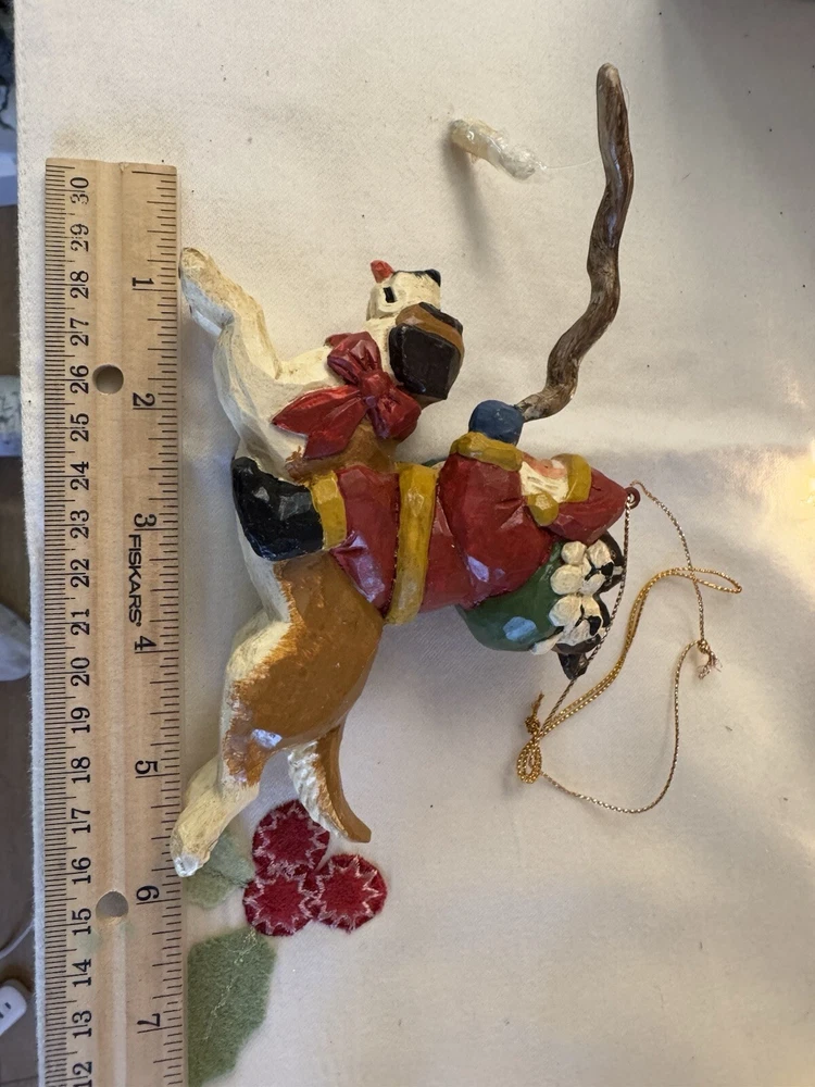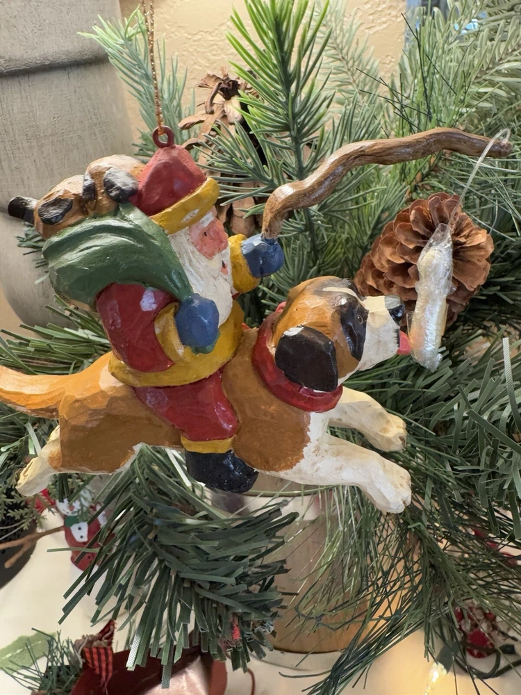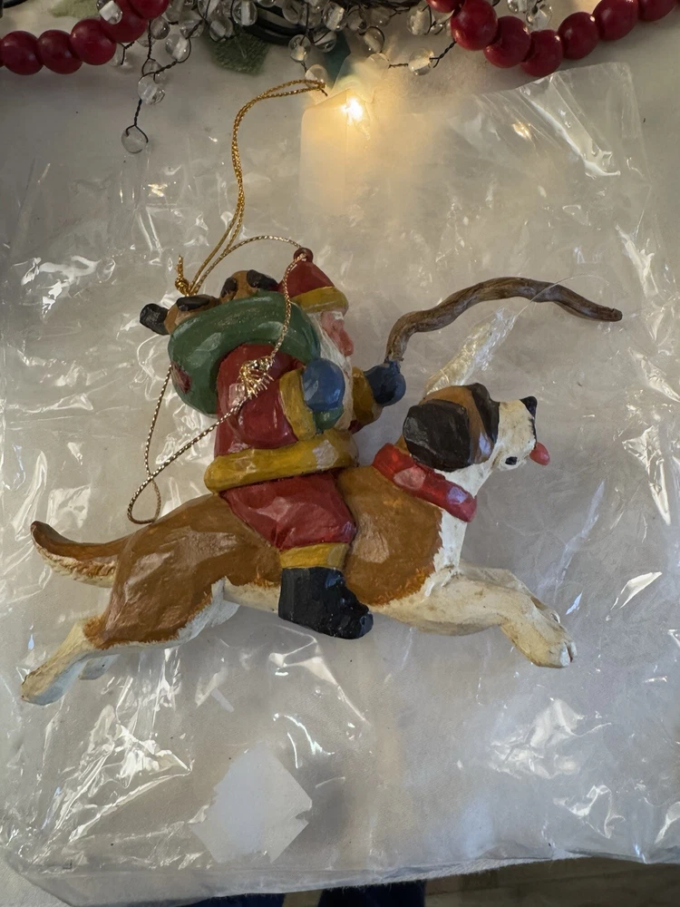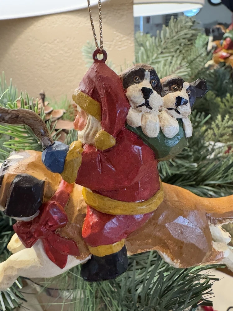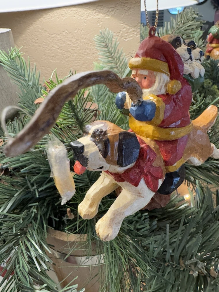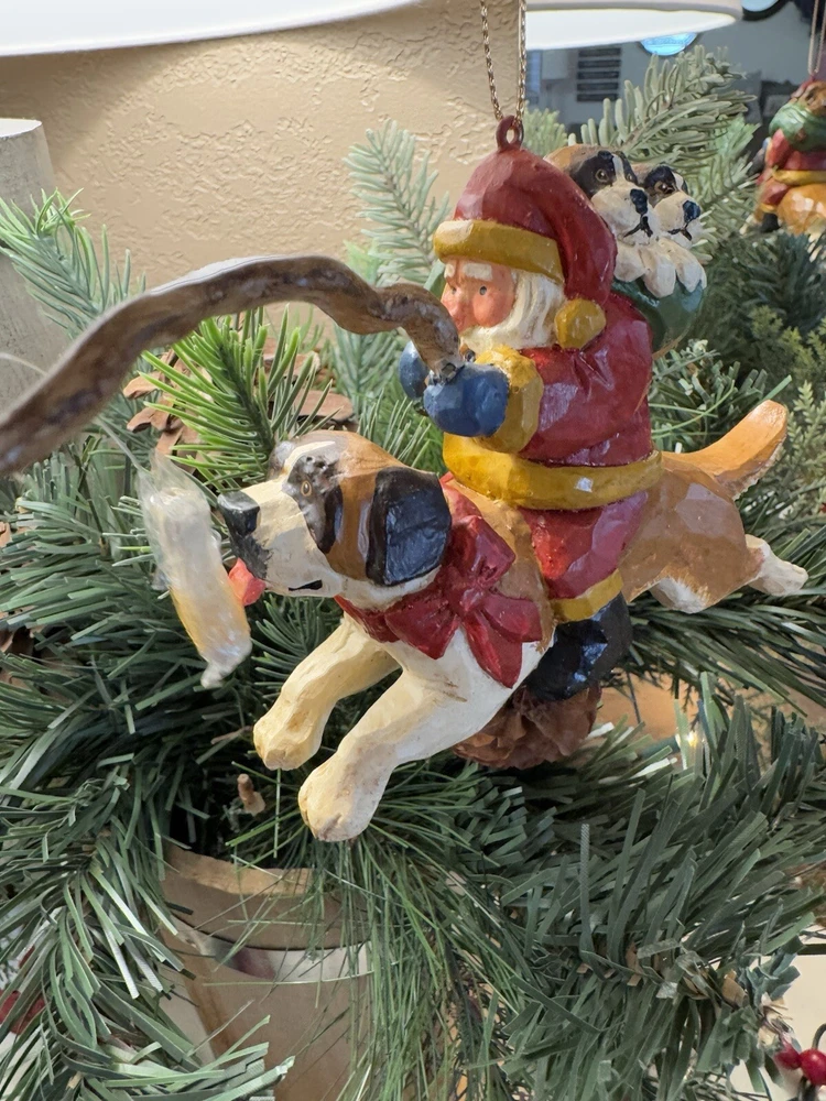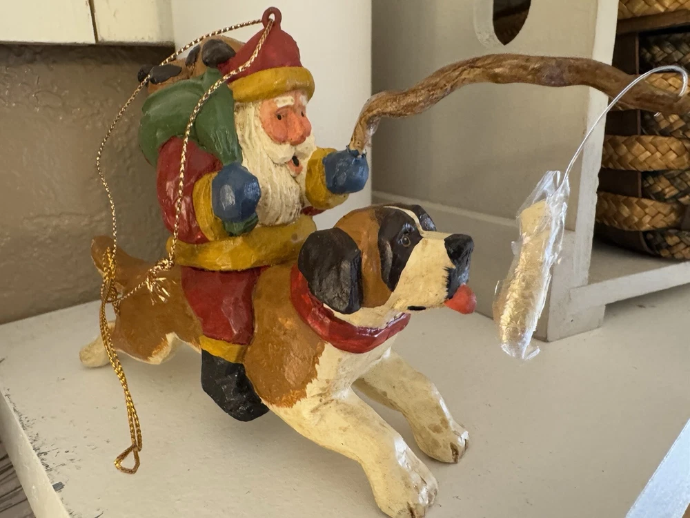 NEVER DISPLAYED NEW I opened the cello for photos The lead stick with doggie bone was in place in Santa's hand when I opened cello ALL IS EXCELLENT condition Gorgeous House of Hatten Santa on St. Bernard with puppies in toy sack Please see all photos SMOKE FREE HOME ALWAYS happy to combine for real shipping savings