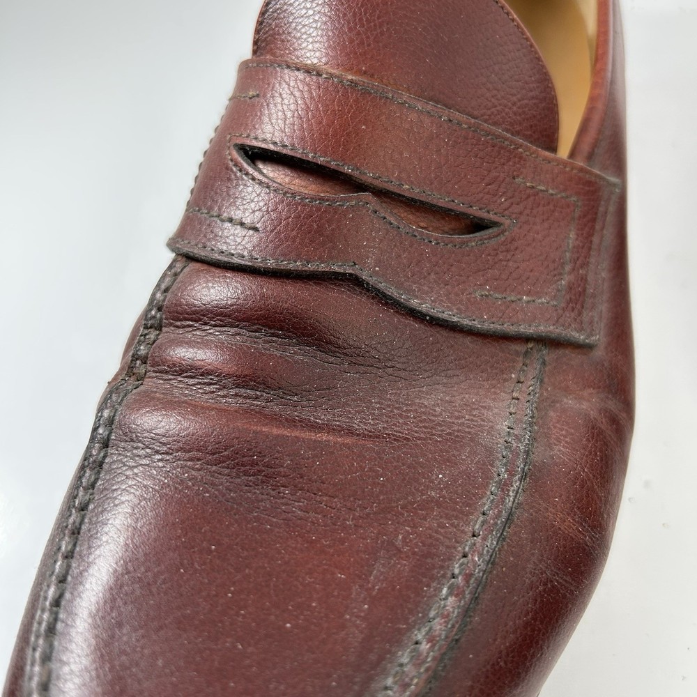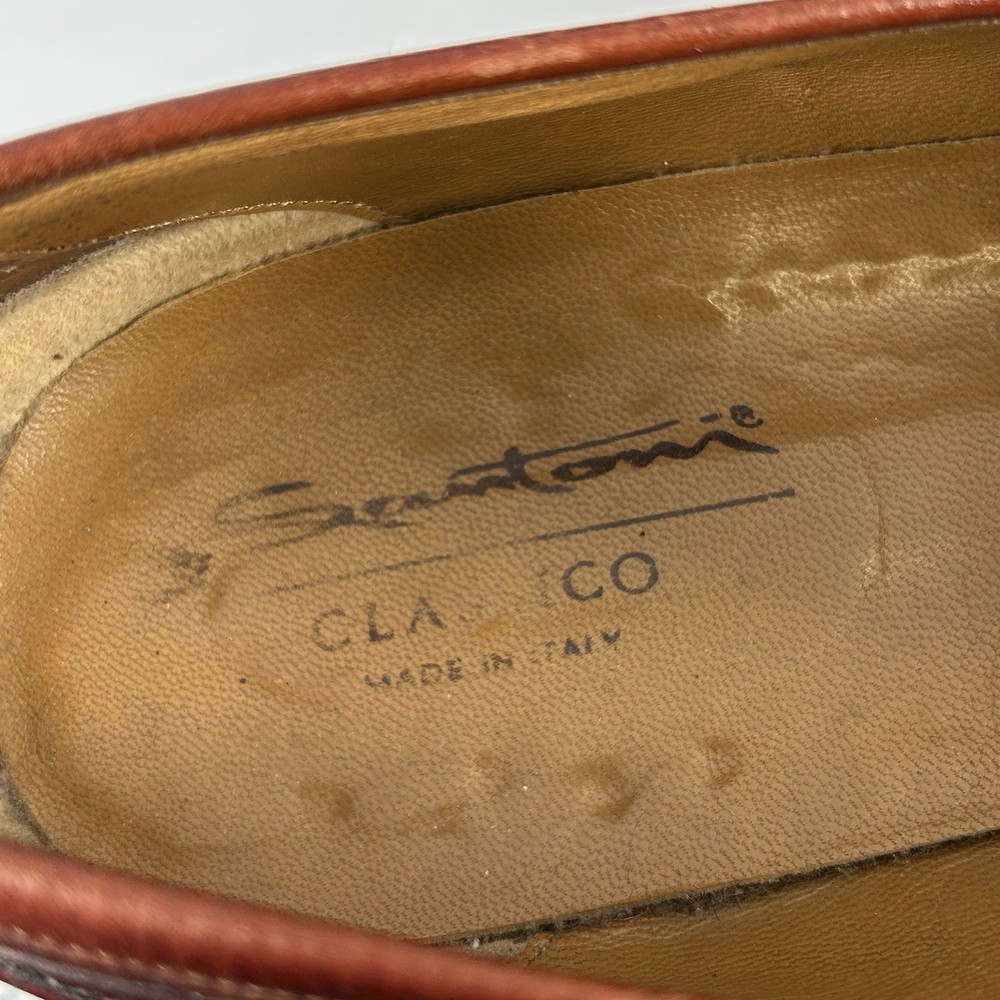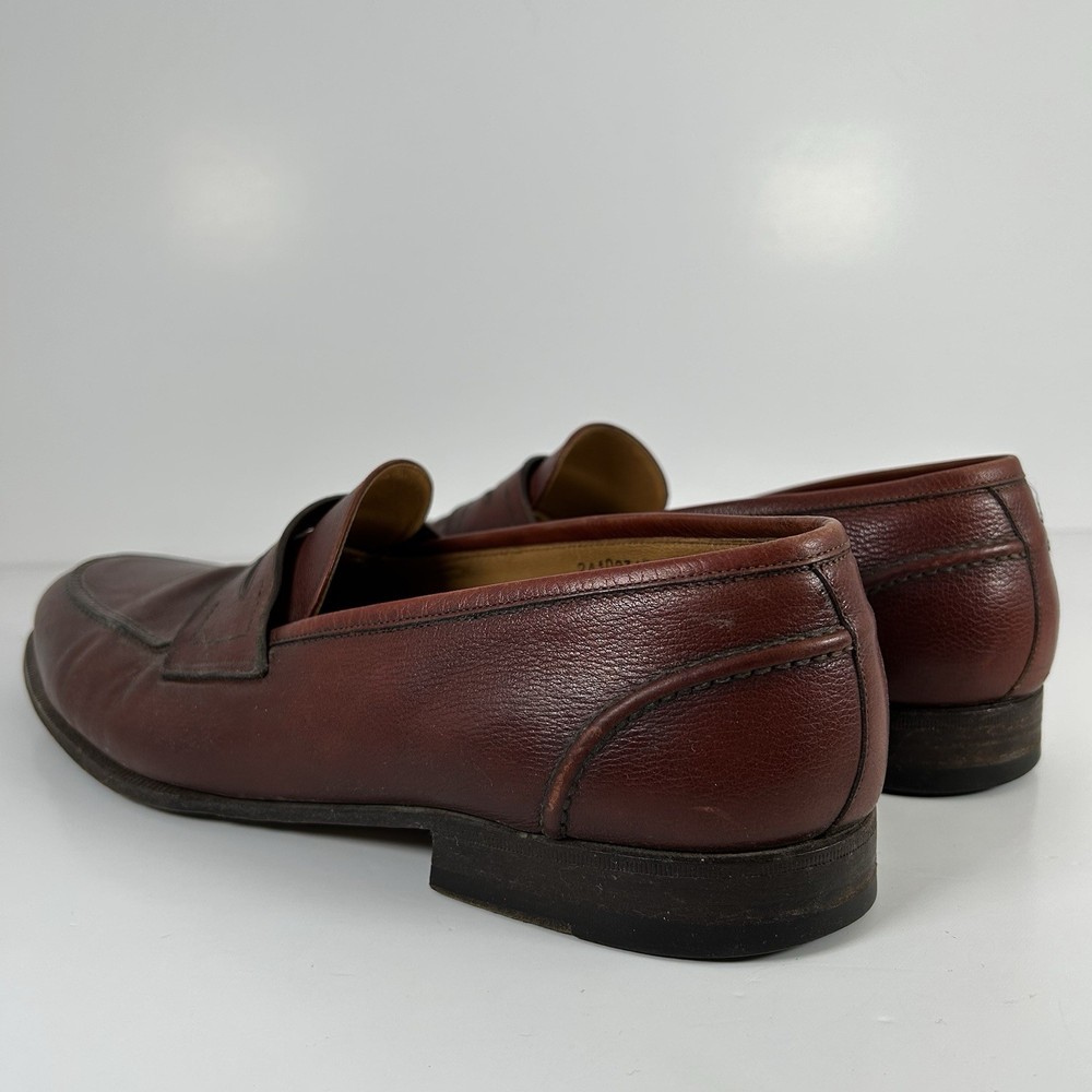 Santoni Italy Tristan Hand Antiqued Brown Leather Dress Shoe Penny Loafer Men 12 Good overall condition. Fast shipper.