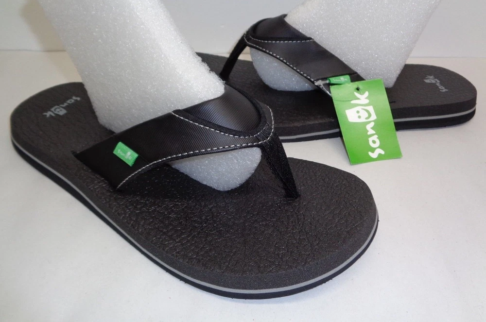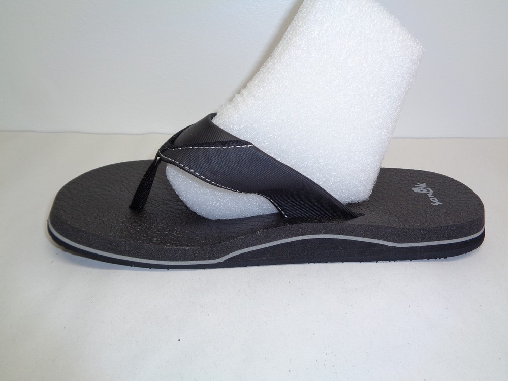 Sanuk Size 9 BEER COZY Yoga Mat Flip Flops Thongs Sandals New Mens Shoes -Style: BEER COZY FLIP FLOP, SMS2839C -Color: Black -Man made upper -Textile lining -Rubber outsole - Thong flip-flop featuring nylon webbing toe post and no-slip footbed crafted from real yoga mat - Arch cookie for added comfort - Happy U sponge rubber outsole -UK 8, Eur 42, and Japan 27
