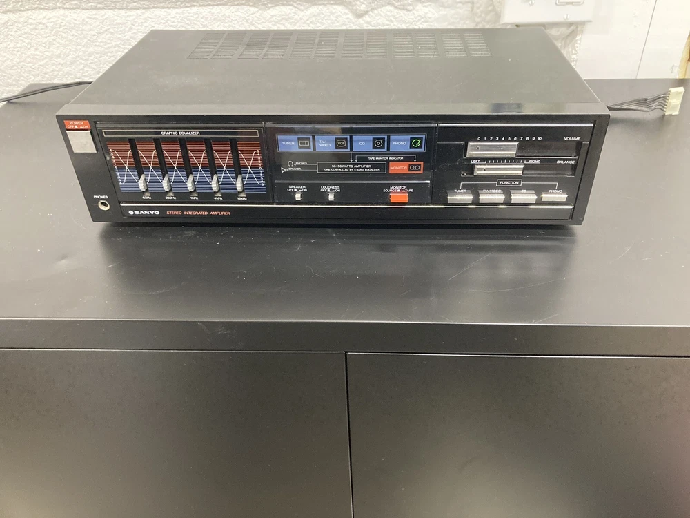 This Sanyo JA-566 Stereo Integrated Amplifier is a vintage piece of equipment that has been tested and works perfectly. With its sleek design and compact size, it is perfect for any home audio setup. The brand Sanyo is known for its high-quality electronic products and this amplifier is no exception. It is a great addition to any consumer electronics collection and is perfect for those who are looking for a unique and rare piece. The model JA-566 is a classic and is sought after by many audiophiles. This amplifier is made in an unknown country or region, adding to its mystery and allure. Next day shipping! No cords or speakers included. Good condition, tested, works! Thanks!