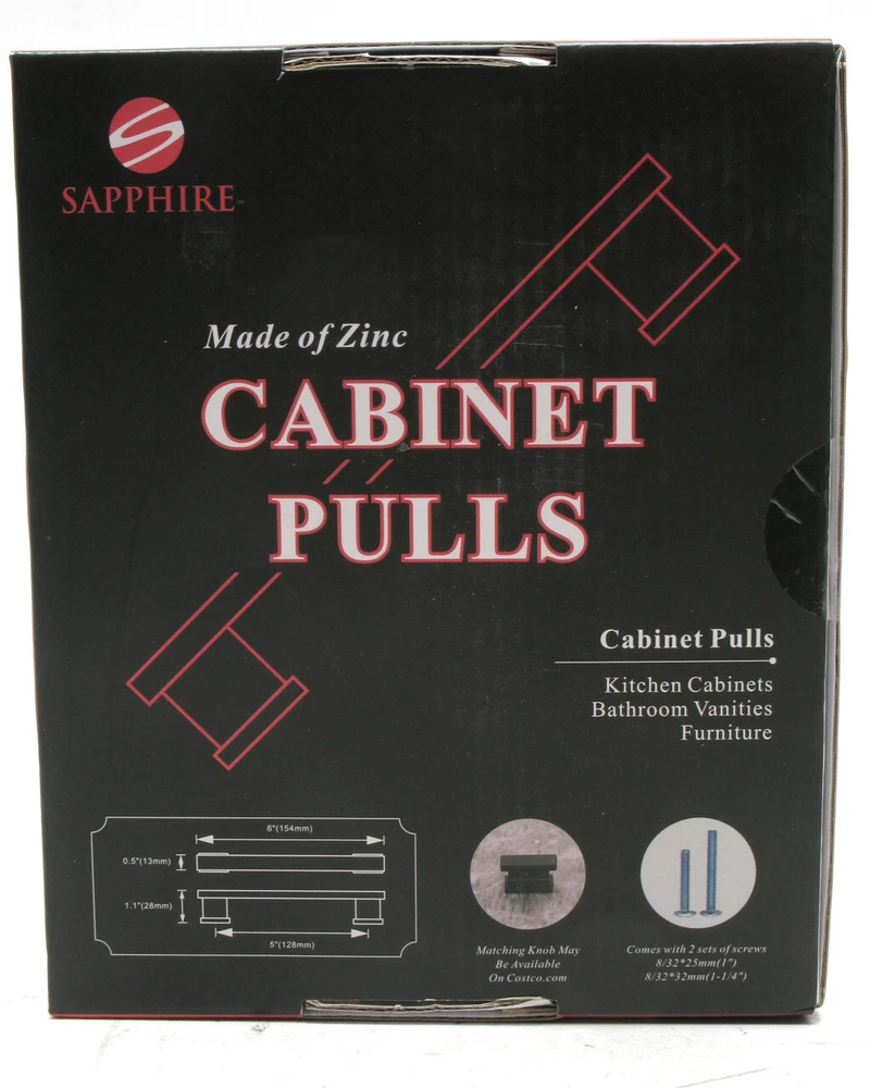 Sapphire Hexa Series Modern 5-inch Center-to-Center Cabinet Pulls, Black, 10 Pack Condition: * New Stock, In OEM Packaging. As Pictured. Additional Notes: * Quantity: 10 Piece Lot * Pull Handle For Kitchen Cabinet * Material: Solid Zinc * Finish: Matte Black * Mount: 5 Inch Center To Center * Handle Length: 6 Inch * Projection: 1.1 Inch * Width: 0.5 Inch * Mounting Hardware Included Sapphire 1609905 (10 Piece) California residents: we are providing the following warning for products shipped to California: WARNING: This product contains, or may contain, chemicals known to the State of California to cause cancer and birth defects or other reproductive harm. (This item was manufactured prior to August 31st, 2018) Additional Terms: * In-store pickups are happily encouraged during regular store hours, cutting out shipping charges. While appointments are not necessary, you can expedite by informing us your intention to pick the item up. * All sales shipped in Florida are subject to 7.0% sales tax. * Unless there is a "Buy it Now" option, we do not end auctions early. (En Español) Términos Adicionales: * Alentamos si quiere recoger sus productos en nuestro negocio; durante horas regulares de trabajo, esto le salvara costos de envió. * Mientras que citas no son necesarias, usted puede apurar su recojo de productos, simplemente informándonos su intención de recoger sus productos en nuestro negocio con anticipacion. * Todas las ventas enviadas por correo en el Estado de la Florida son sujetas a 7.0% impuesto de venta. * A no ser que usted vea el anuncio "Buy it Now" ("Comprar ahora"), nosotros no terminamos las subastas temprano. Skycraft Parts & Surplus Orlando, FL Specializing in surplus electronic components and parts for over 40 years! Be Sure to Visit our eBay Store