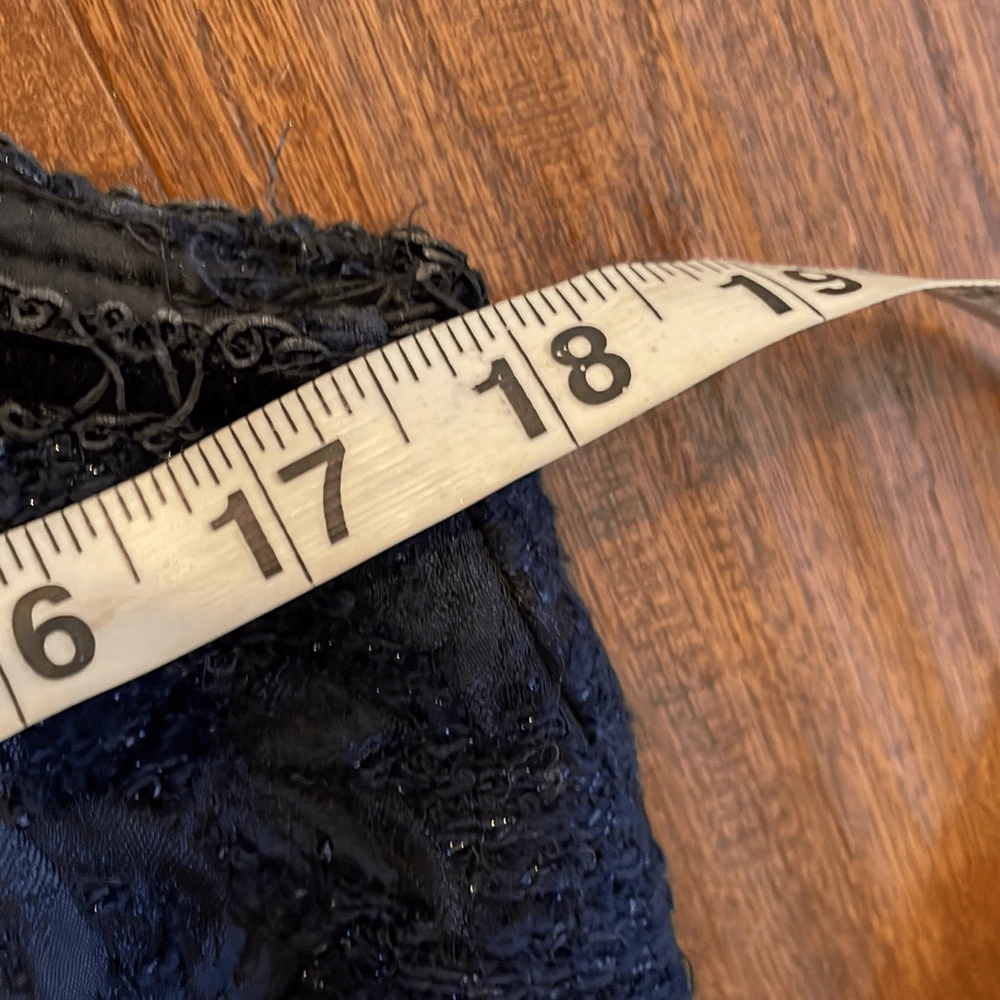 Brand: Sara Campbell Description: wool blend brocade sleeveless dress with silk lining- allover rose print with ribbon trim Size: missing size tag but measures like an 8 Color: navy and black Condition: Gently Worn Very Good ๐๐ป Measurements: Pit to pit: 18โ Length: 40โ **Bundle and Save!!** all measurements are approximate and taken laying down A12