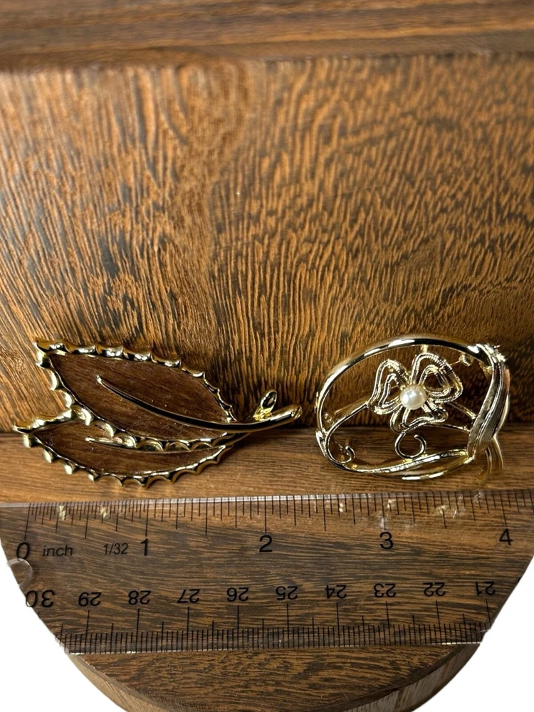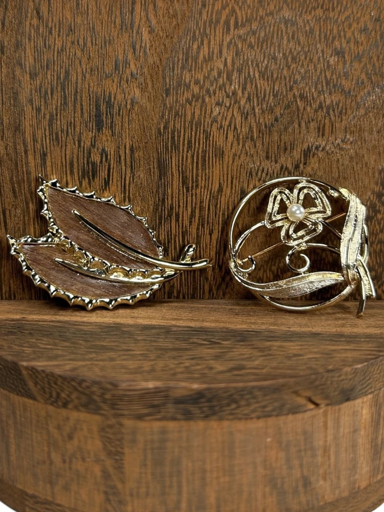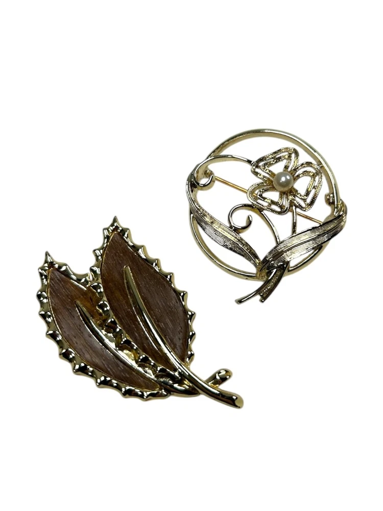 VINTAGE Sara Coventry Bundle in excellent pre-loved condition. See pictures for details Both have found safety catch clasp closures Both are marked Faux wood double leaf gold tone floral leaf brooch Signed SARA COV Length: 2.5" Width: 1.25" Faux pearl flower brooch signed COVENTRY Length: 1.5" Width: 1.5" #sarahcoventry #sarahcoventryjewelry #broochlot #brooch #sarahcoventrybrooch #broochbundle #fauxpearl #classy #vintagebrooch #vintagebrooches