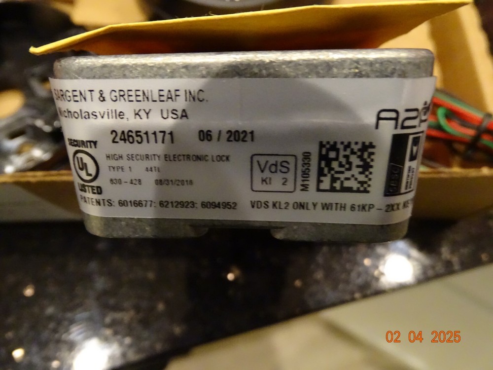 Sargent & Greenleaf motor driven electronic 6124 lock with keypad - New open box. Opens to 123456#. Kit includes keypad, lock, instructions and hardware. Photos are of item to be sold.