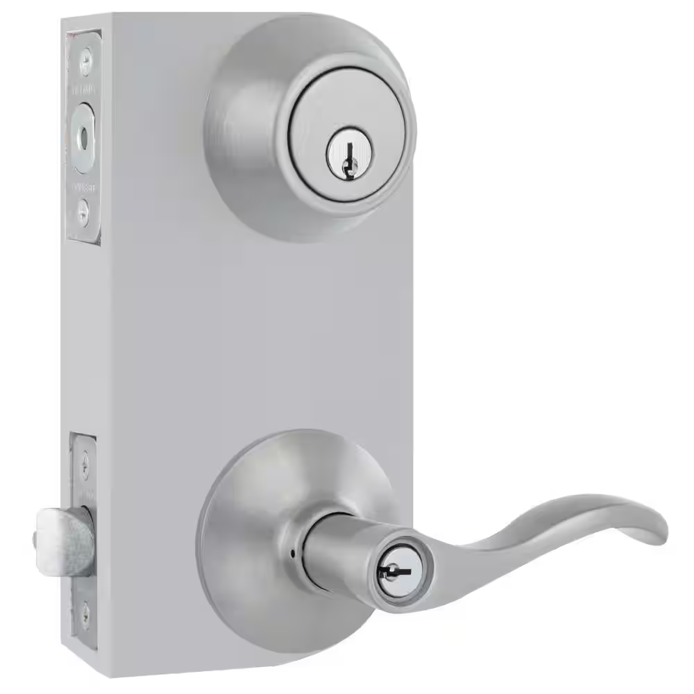 Fast Shipping On All Items 30 Days Money Guarantee Customer Support Excellent Service 100% Satisfaction Satisfaction Guaranteed Naples Satin Nickel Combo Pack with Single Cylinder Deadbolt Specification Commercial/Residential Residential Door Lock Style Classic Door Locks & Knobs Product Type Lever Combo Packs Door Type Entry w/ Deadbolt Electronic/Mechanical Mechanical Features Adjustable Backset,Easy Installation Finish Satin Nickel Finish Family Satin Nickel Hardware Color Family Nickel Hardware Included Lock with Keyed Lever Included Drilling Template,Installation Instructions,Mounting Hardware Interior/Exterior Exterior Keyway KW1 Material Zinc Product Weight (lb) 2.85 lb Returnable 90-Day Security/ANSI Grade ANSI Grade 3 (Good) Manufacturer Warranty Limited Lifetime Guarantee Assembled Depth (in) 6.50 in Assembled Height (in) 2.83 in Assembled Width (in) 5.50 in 5.5 inches x 6.5 inches x 2.83 inches. Weight: 2.85 lb Item Description Locks resist drilling, sawing, picking and prying Can be re-keyed to match an existing KW1 key Easy to replace and install with a Phillips screwdriver Guard against intrusions and keep your home and family protected with the Naples Entry Lever and Single Cylinder Deadbolt Combo Pack from Defiant. This bundle includes 4-keys that lock/unlock both the entry lever and deadbolt, which are built to withstand drilling, sawing, picking and prying. The sturdy lockset affixes easily with the included fasteners, compatible with most residential exterior doors and requiring only a screwdriver to install. Rest easier at night knowing your entryway is fortified with these ANSI Grade 3-certified devices. This set can be rekeyed using a traditional KW rekey kit. Please speak with your local Home Depot for further details about this process. Featuring 70 mm rose to cover old paint marks around lever Limited lifetime guarantee Easy installation and replacement with just a Phillips screwdriver Ideal for exterior door applications where locking with a key is desirable Features an EZ fit lever latch to accommodate 2-3/8 in. or 2-3/4 in. backset without any adjustments needed Includes 1 entry lever, 1 single cylinder deadbolt, 4-keys and mounting hardware Fits doors between 1-3/8 in. to 1-3/4 in. thick Deadbolt latch can be changed from a 2-3/8 in. backset to a 2-3/4 in. backset with a twist About us We offer the best prices around on high quality products. Our E-store includes media such as books, movies, music and games while offering electronics, toys, sporting apparel, clothing, tools, general home, garden items and more. Shipping We are always working hard to ensure your package arrives as soon as possible. Please understand that some factors like weather, high postal traffic, and the performance of shipping companies are outside of our control. We offer free shipping to the lower 48 states and ship within 2-3 business days of payment, usually sooner. We do not accept P.O. Boxes. Please provide a physical address. For shipping outside of the continental USA, we only use eBay's Global Shipping Program.The item is shipped to KY and then sent to the rest of the world. International customers are responsible for all duties and taxes. Continue to check out to calculate costs for shipping the item to your country. Messages regarding eBay's Global Shipping Program MUST be directed at eBay EXCLUSIVELY. Returns We offer a 30-Day Return Policy on items in which you are not completely satisfied with. You have the option of a full-refund or an exchange of the item. No returns are available on items shipped outside of the USA Satisfaction We try over very best to make sure every customer is completely satisfied. If there's a problem, message us! We're happy to help. Payment Options Shop With Confidence