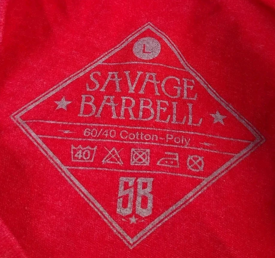 Upgrade your gym wardrobe with this Savage Barbell T-Shirt. Made with a blended fabric that is both breathable and stretchy, this red shirt is perfect for bodybuilding and gym training. The crew neck and short sleeves make it a basic and modern piece of activewear that is suitable for summer, fall, and spring. This T-shirt is designed for men in size L and features a solid pattern with a light fabric wash. It is easy to care for as it is machine washable. The pullover closure and fitted sleeves provide a comfortable fit that is perfect for a workout. Get your hands on this Barbell Apparel T-shirt, perfect for any gym-goer.