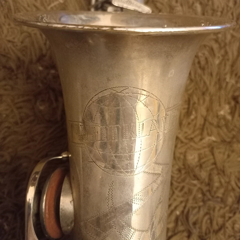 Rare Weltklang Alto Saxophone Germany. The saxophone is in working condition. The silver cover is damaged in several places. Saxophone complete with case, mouthpiece and ligature. Weight about 3.8 kg, With wooden case - about 5.5kg. An excellent collectible item. Made in the GDR (East Germany). 70-80s. International shipping to any country, there are exceptions when I do not ship, I am not responsible for taxes, customs and postage in your country. Private sale, not a dealer. Depends on the remoteness of the country and continent. Photo receipts can be provided at any time. According to your request. As well as additional photos of the goods, in the messages. If you need express delivery of the goods, please provide the postal code, country, city. I'll make a calculation. Shipment within 5 business days except weekends and holidays. If you have any questions, please contact me before purchasing. Thank.