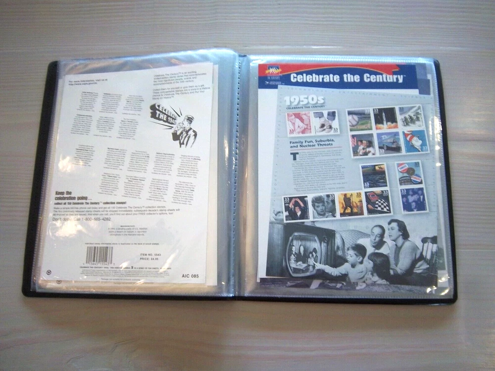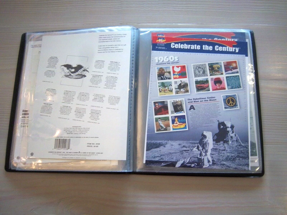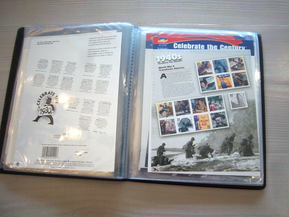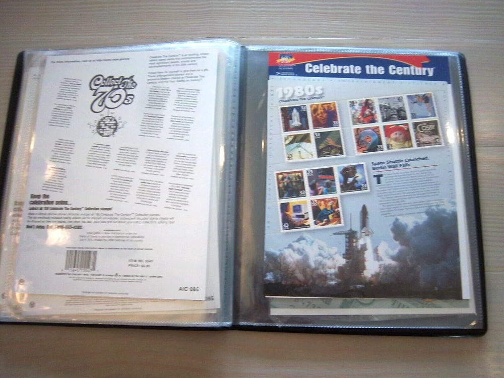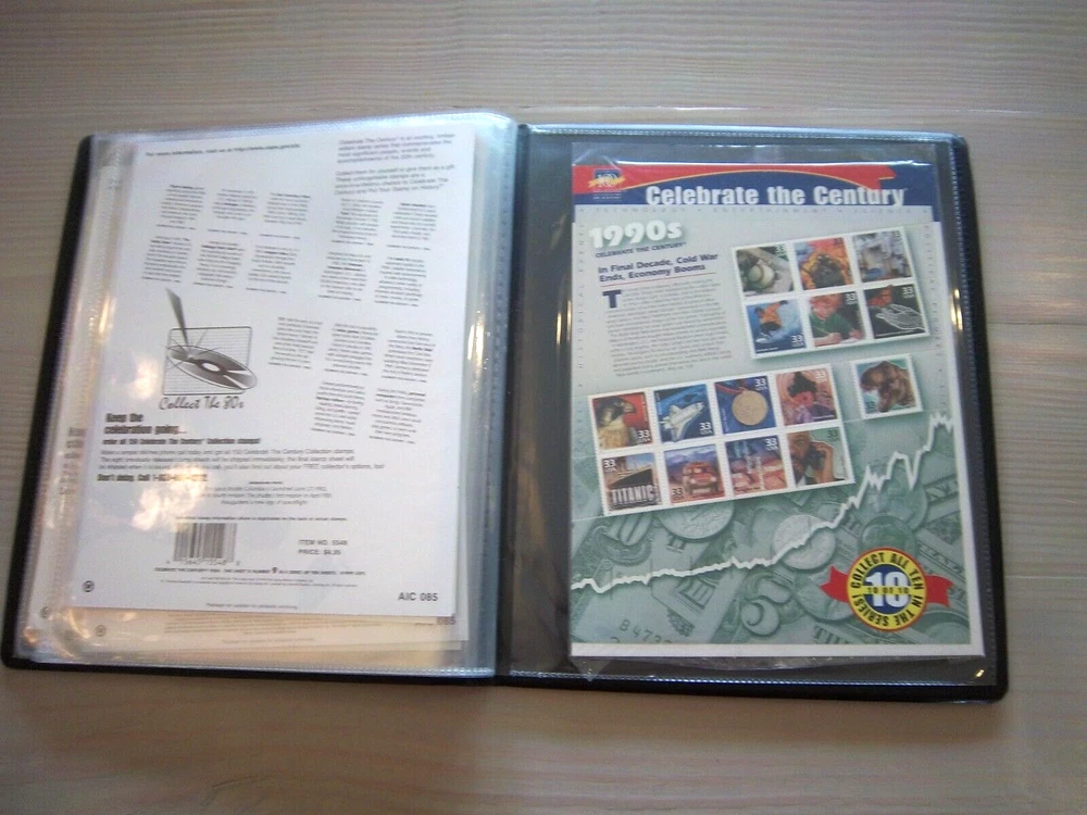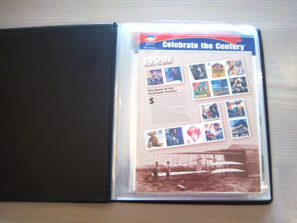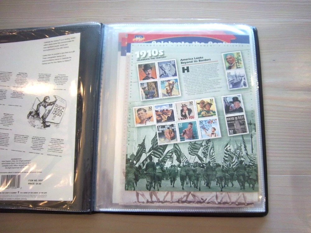 Celebrate the Century Collection Sc. 3182 - 3191 This is the complete series issued as the 20th. century was drawing to a close. Each sheet features 15 stamps. This complete set is mint, with sheets clear pages and housed in a specialized black album. See Stated mailing / handling to U.S. and Worldwide Destinations. Be sure to add me to your favorites list ! Check out my other items ! Thanks for Looking! Check out my Ebay store under the USPS Mint Set category or current auctions for other year sets.