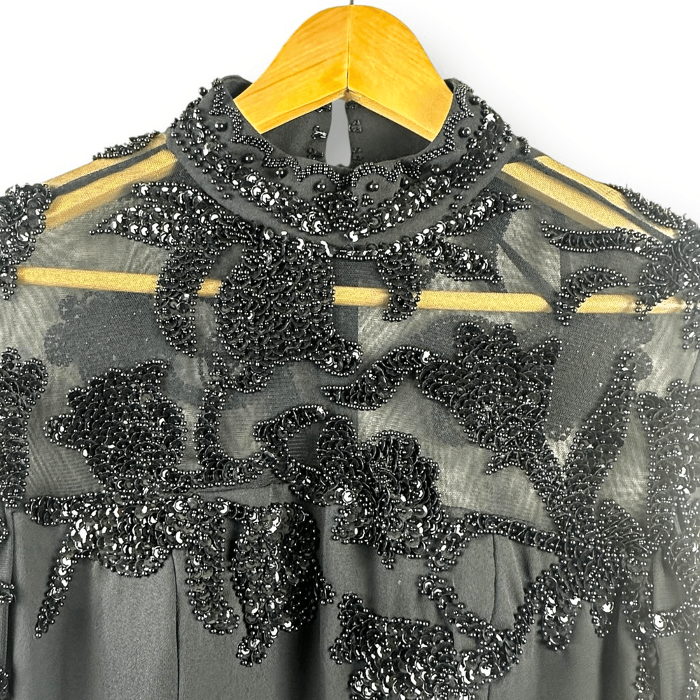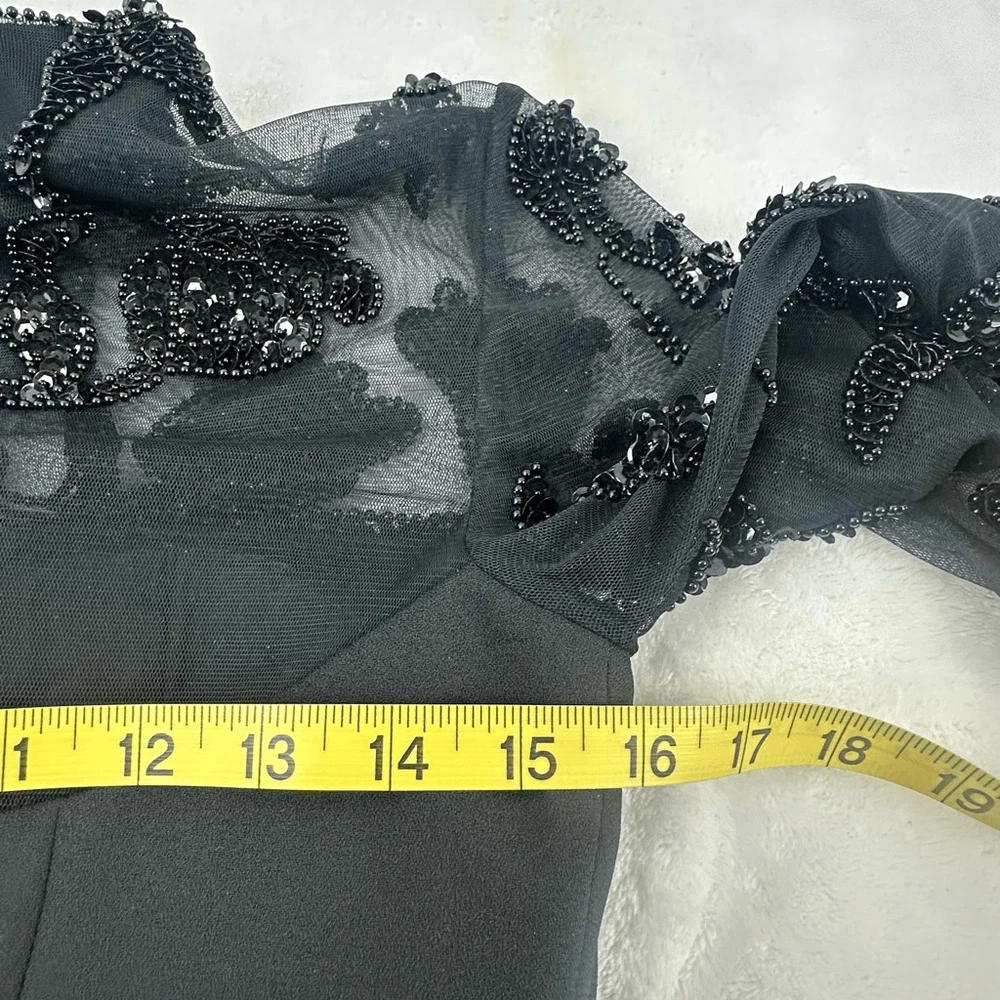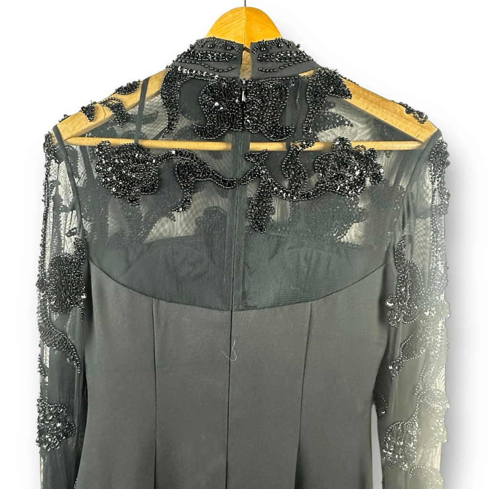 Scala Collection 8 High Neck Beaded Mesh Sleeve Maxi Dress Black Victorian Goth Women's 8- See photos for approximate measurements New with tags -$318 MSRP Ships fast Ships from a smoke free pet friendly home