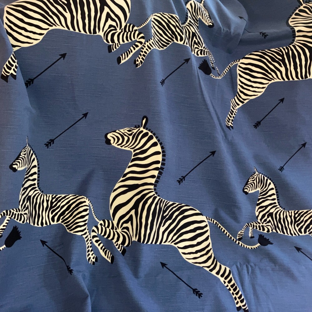 This Scalamandré zebra fabric is a fun and stylish choice for any project! The denim material feels durable yet soft, and the playful zebra print adds a unique, artistic touch. Great for upholstery, pillows, or even curtains—it’s versatile and high-quality. The blue shade is vibrant, and the cotton-linen blend makes it easy to work with. Perfect for anyone looking to add a bold, whimsical flair to their home decor or crafts!