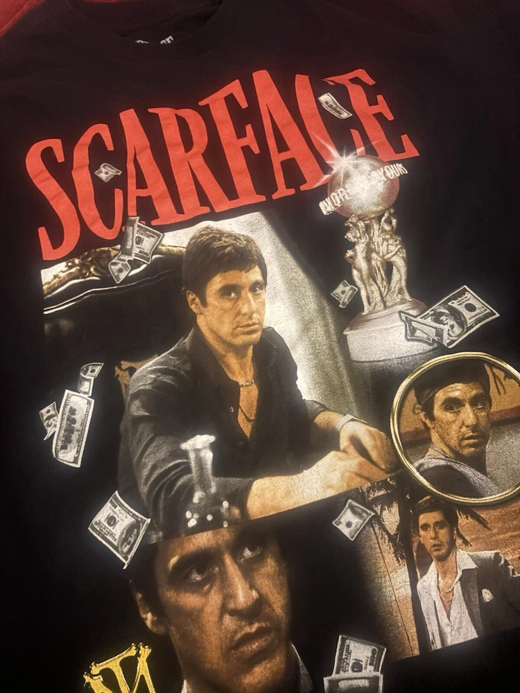 Show off your love for the iconic movie Scarface with this limited edition Al Pacino T-Shirt. The black cotton shirt features a graphic print of the legendary actor and is machine washable for easy care. With a regular fit and short sleeves, this shirt is perfect for any fan of the film. The shirt is available in size medium and is tagless for added comfort. The breathable material ensures that you stay cool and comfortable all day long. This Scarface Al Pacino shirt is a must-have for any movie enthusiast and is sure to make a statement.