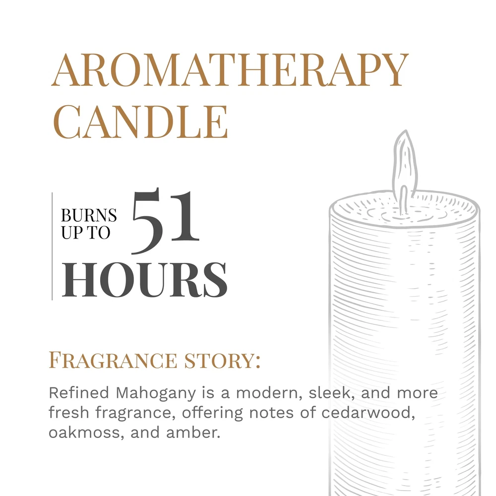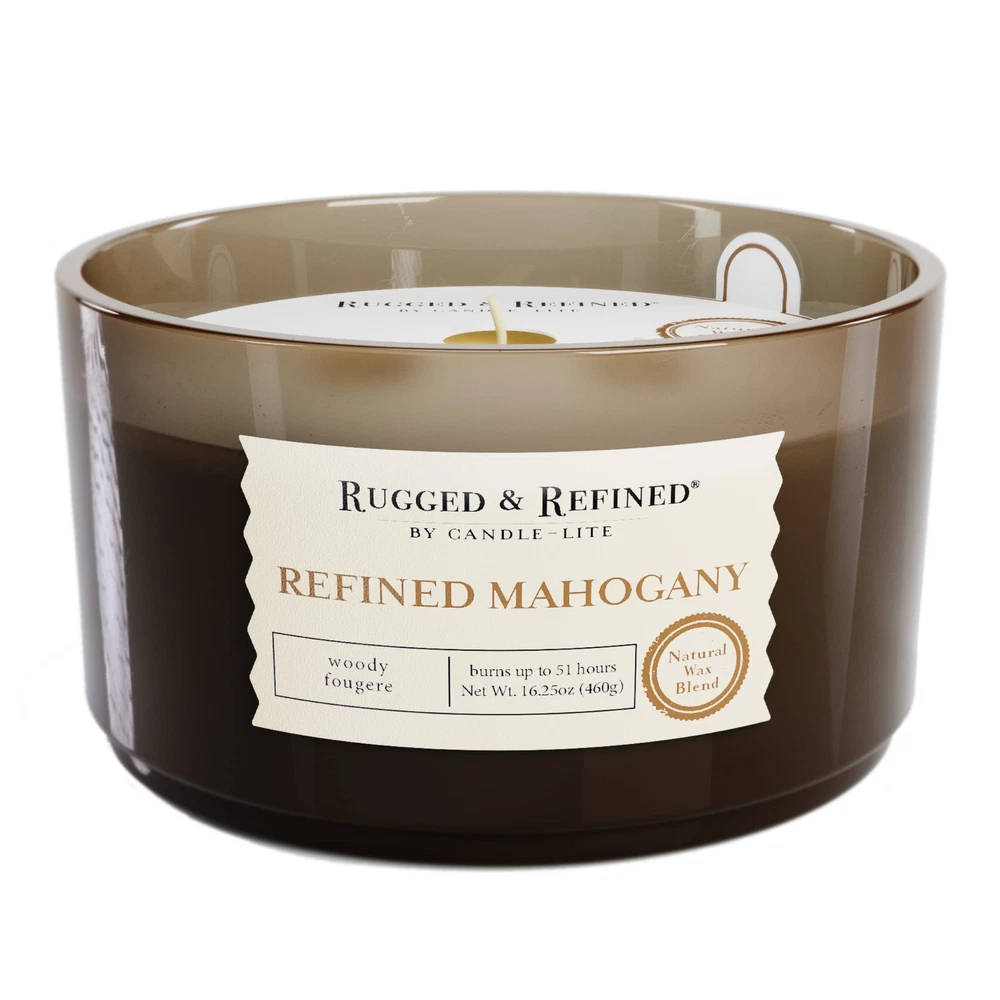 Discover a new line of masculine candles featuring sleek, earth tone, glass vessels, this collection of refreshing and bold fragrences elevates every room. Meet by Candle-Lite Company. Bring that warm and sweet scent into your home with this Refined Mohogany scented candle. This fresh scent offerswoody notes of strong mahogany wood, tree moss, spicy cedarwood, a touch of citrus, and warm amber making it one of the best candles for men & women. Measuring 5.35"L x 5.35"W x 3"H, this candle is the perfect size to place in any room. Enjoy a calming glow no matter where you are with this 16.25 oz. candle. Whether you’re working in your home office, enjoying game night with friends, or curling up on the couch for a movie night, this candle is perfect for any occasion. This 3-wick candle has three 100% cotton wicks, is lead free, and burns up to 51 hours. Not only does this white-colored paraffin wax candle accent your home décor, but it releases a calming fragrance while maintaining a consistent burn for you to enjoy. Always remember to candle with care and burn within sight. Keep candles away from children, pets, and things that can catch fire. Stop use when .5” of unmelted wax remains and extinguish every 4 hours for cooling. Trim the candle wick to .25” prior to each use. Lighting America’s hearts and homes since 1840, Candle-lite Company has been crafting quality candles in Ohio’s heartland for over 180 years. Create an inviting atmosphere with these candles for home scented with varied fragrances suitable for all the different rooms. Every Candle-lite product is 100% satisfaction guaranteed. Whether it's floral, fresh, fruity or gourmand, we have a fragrance for you. AROMATHERAPY CANDLE – This woody scent offers an escape deep in a mohogany forest with towering trees for miles making it one of the best candles for women & men THREE WICK CANDLE – This Candle-lite candle has a three 100% cotton wicks and burns up to 51 hours. Its white paraffin candle wax not only accents your home décor but releases a calming scent while maintaining a consistent burn. PERFECT FOR ANY ROOM – Bring that warm, woody scent into any room with this 16.25 oz. candle. Whether you’re working in your home office, enjoying game night with friends, or staying in for a movie night, this candle is perfect for any occasion. CANDLE WITH CARE – Always remember to burn within sight and keep away from children, pets, and things that can catch fire. Stop use when .5” of unmelted wax remains and extinguish every 4 hours for cooling. Trim the candle wick to .25” prior to each use. - Discover a new line of masculine candles featuring sleek, earth tone, glass vessels, this collection of refreshing and bold fragrences elevates every room.