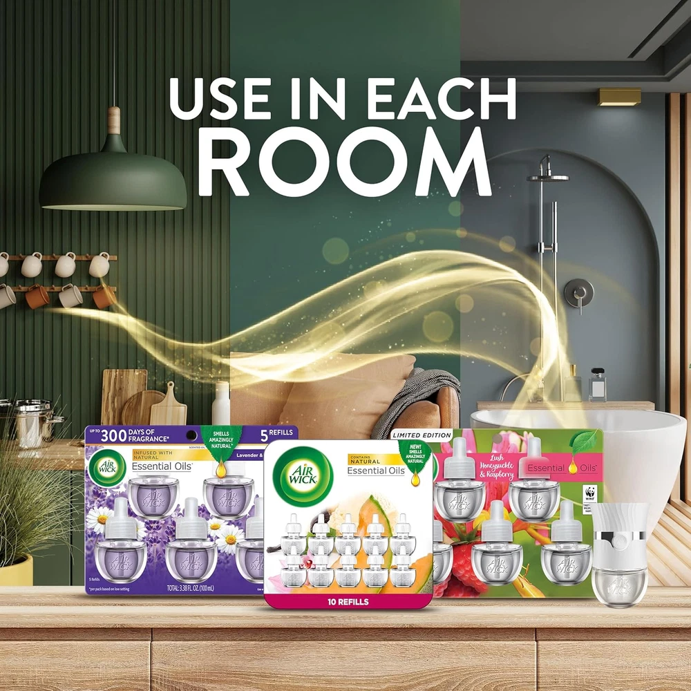 Scented Oil - Refill Sweet Orange & Lemon 5 Ct. Scented Oil Refill Pack - Sweet FRAGRANCE: Aromatic lavender has been reimagined with the infusion of delicate waterlily florals for a scent that smells wonderfully refreshing . 2X MORE ESSENTIAL OILS: Infused with 2x more natural essential oils than regular Air Wick scented oils for an incredible fragrance experience VALUE: Each refill provides up to 60 days of continuous and long-lasting fragrance based on low setting WARMER: Easy adjust warmer with 5X fragrance settings; Refills are compatible with all versions of Air Wick plug in warmers Set the mood in your space with indulgent scents inspired by nature. Infused with 2x more natural essential oils* for our authentic fragrance experience. A luxurious treat for you and your space. Air Wick Vibrant Scented Oil Refills release continuous fragrance for up to 60 days (based on low setting) so your home smells welcoming. Our latest Air Wick scented oil warmer, the Advanced, has anti fading technology, a fragrance boost button, and a low-refill indicator. It continuously diffuses and carefully blends fragrance throughout your home, office, or space. *Vibrant fragrance infused with two times more natural essential oils vs regular Air Wick Scented Oils. Item model number 6233800031 Power Source Corded Electric Color orange Scent Sweet Orange & Lemon Product Dimensions 2.07 x 7.8 x 6.18 inches; 15.2 ounces Country of Origin Mexico Item Form Oil Shipping Fast shipping is very important for us. Our standard US shipping service is FREE. Your order will be shipped within 2-3 business days upon full payment received. Your order will be delivered within 2-3 business days after the handling time. We only ship to the confirmed PayPal address. We reserve the right to cancel any order for any reason at any time. We are not responsible for undeliverable addresses. Returns and payment We offer a 30 days return policy from checkout winning date. We allow only PayPal as payment method FeedBack Your feedback very important to us, after you get your package and you are satisfied with our service please leave us positive feedback If you have any problem with your order / any questions please before leave any type of feedback For any questions, using eBay contact system Please visit our eBay store to check out other items for sale! Thank you for shopping at our store.