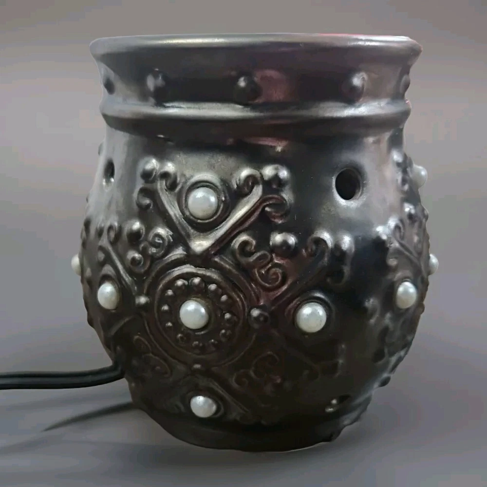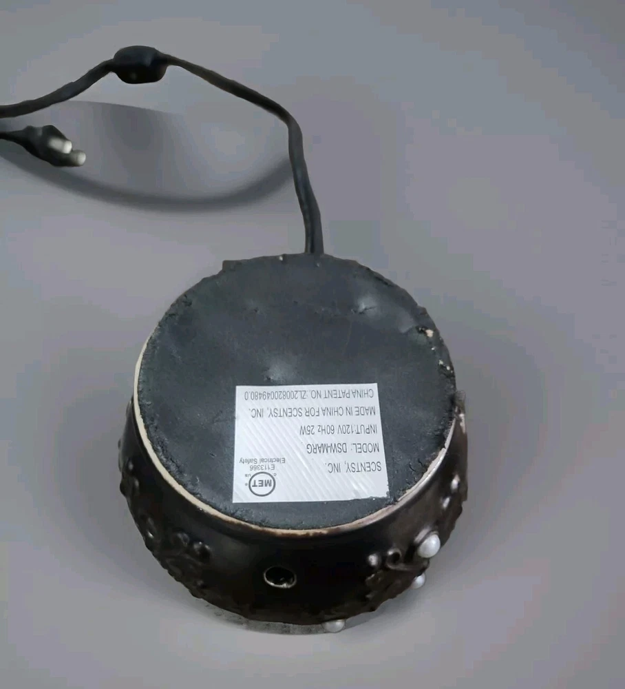 *Does not include the topper* Tested, working and ready for parts. Thank you! The Scentsy MARGOT Pearl Bronze Metallic look Wax Warmer is a retired and rare home fragrance product made by Scentsy. This candle oil/wax warmer is designed as a wall plug-in with a black ceramic body featuring a pearl bronze metallic finish, adding a touch of elegance to any room. The model is Scentsy MARGOT, and it is manufactured in China, making it a unique and sought-after piece for adults looking to enhance their home with beautiful scents.